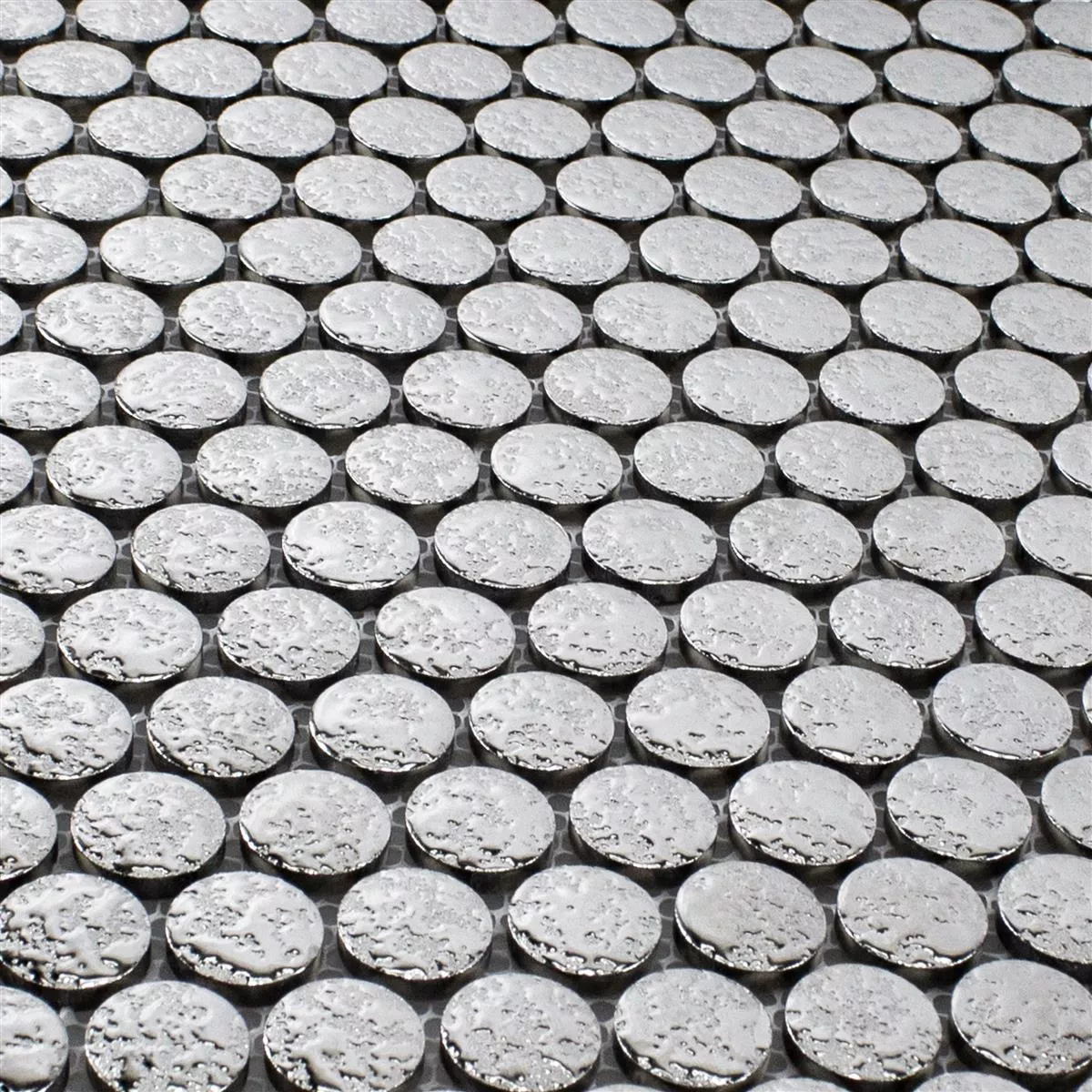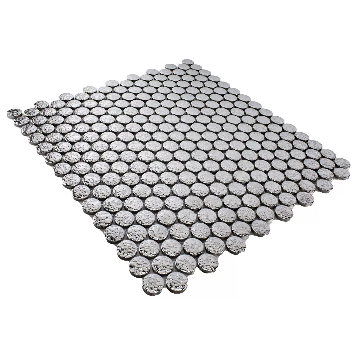 Ceramic Button Effect Mosaic Tiles Meneksche Silver