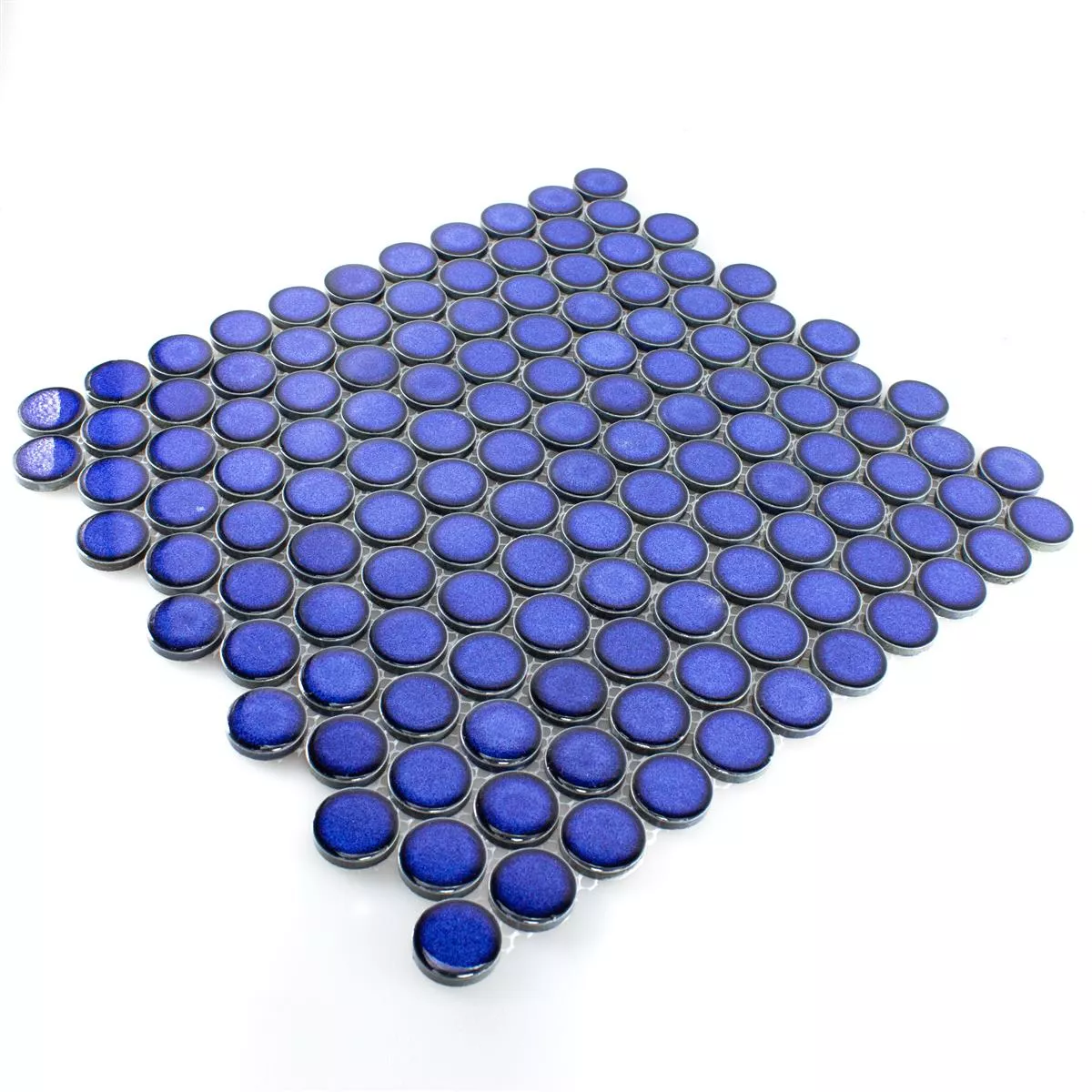 The ceramic button mosaic tiles in blue combine timeless design and versatile applications in a stylish overall package. With their round format and glossy surface, they give every room a modern and elegant look. The tiles can be used as wall, floor and mosaic tiles and are also ideal for outdoor use thanks to their glazed and frost-resistant properties.