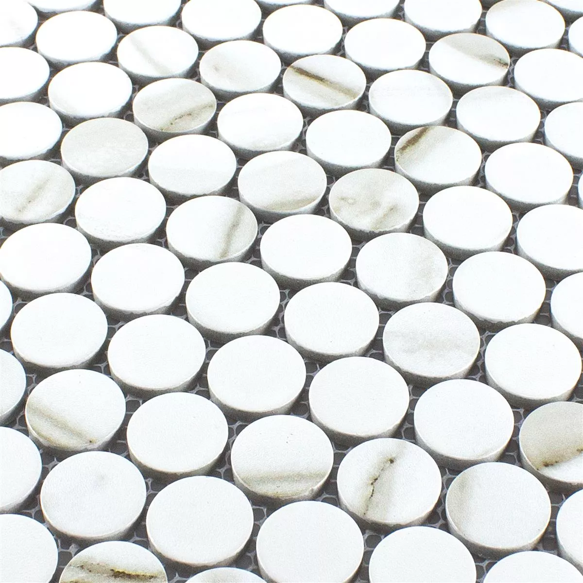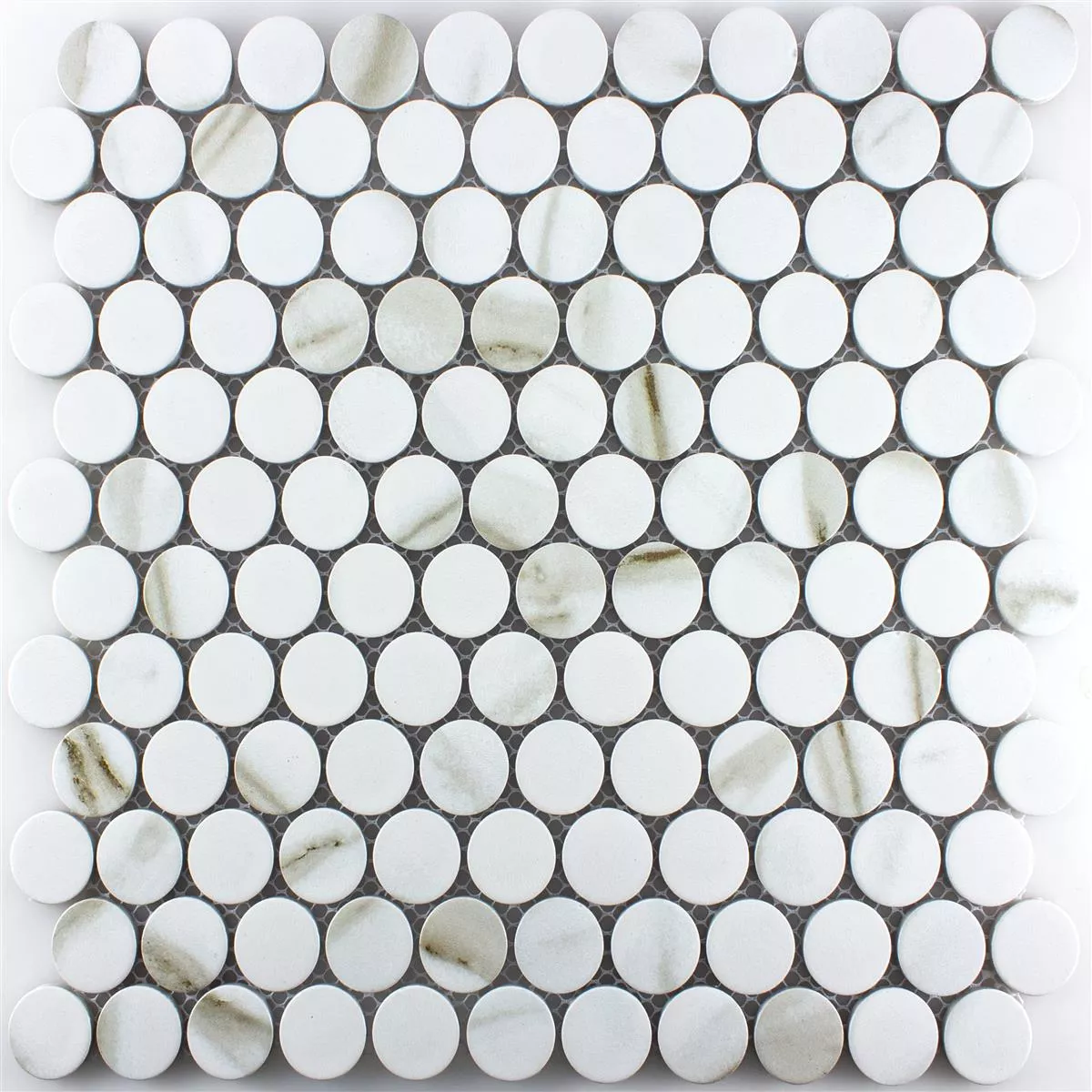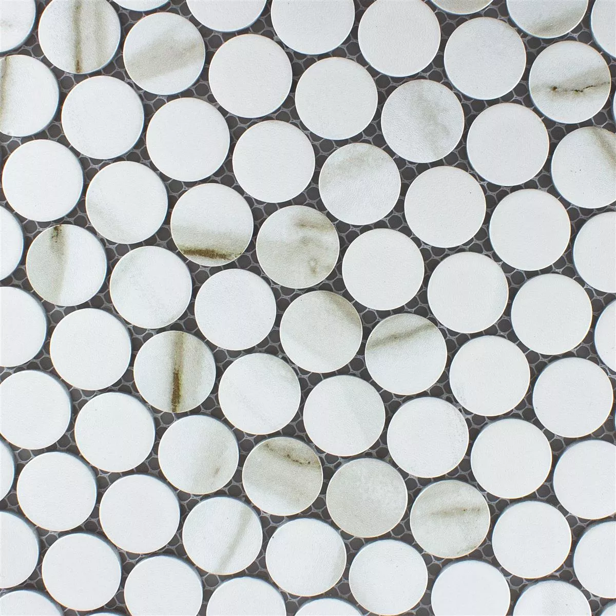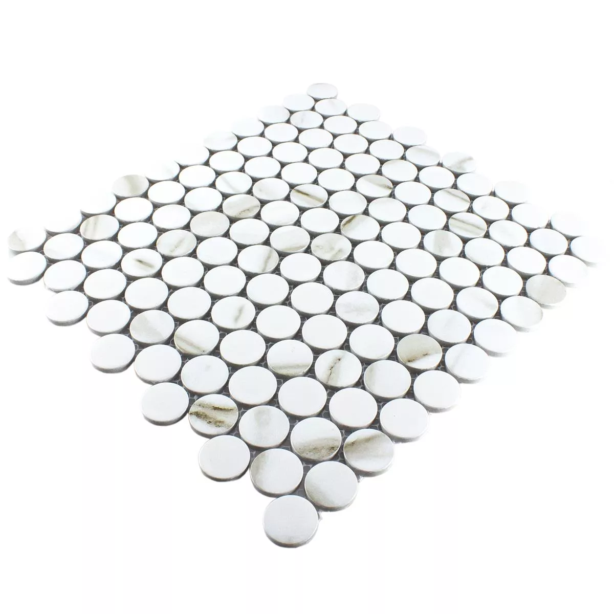 Ceramic Button Round Mosaic Tiles Hunter Calacatta