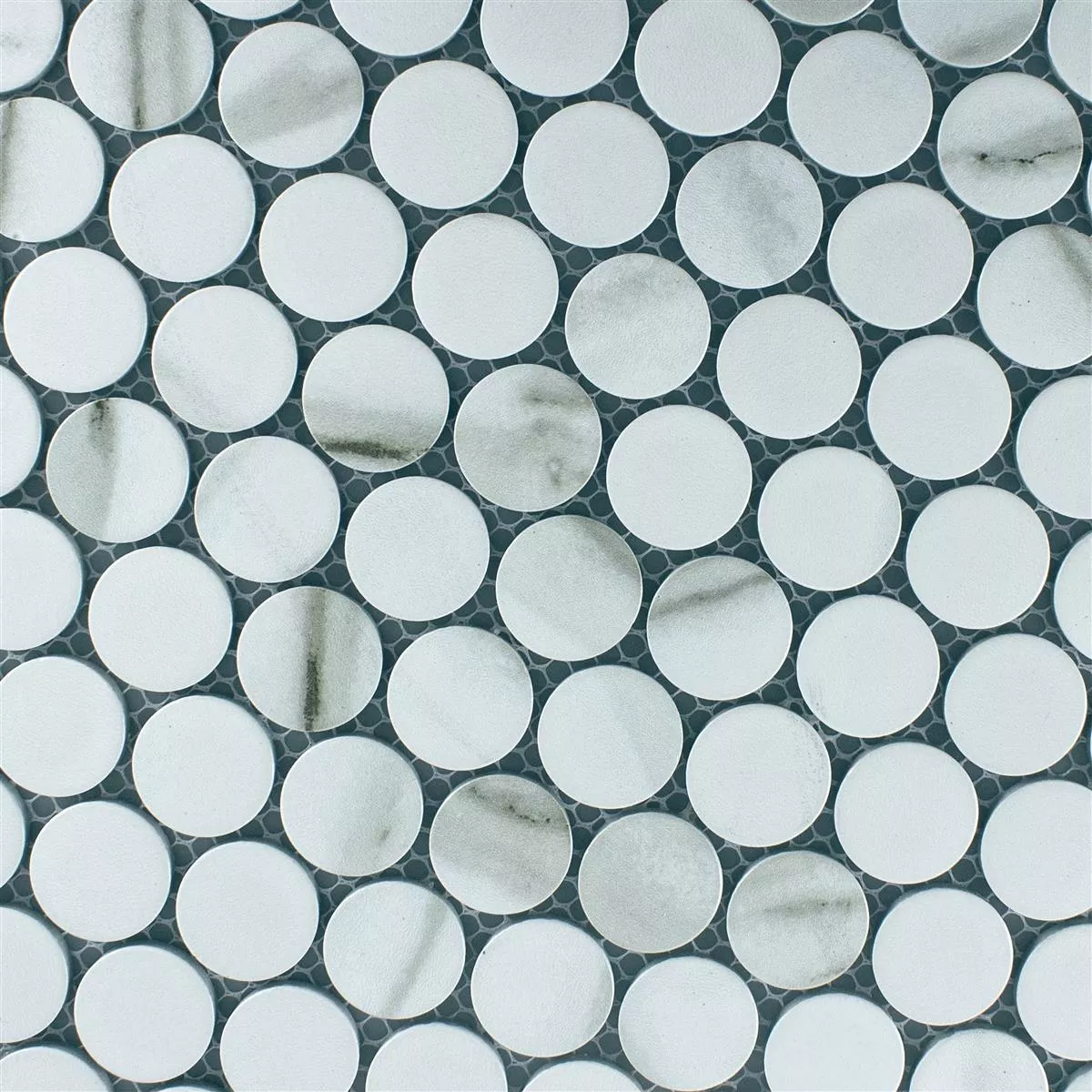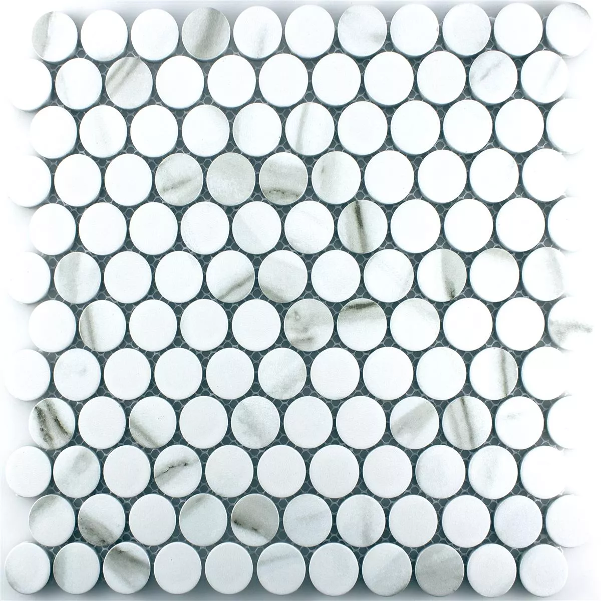 Ceramic Button Round Mosaic Tiles Hunter Carrara