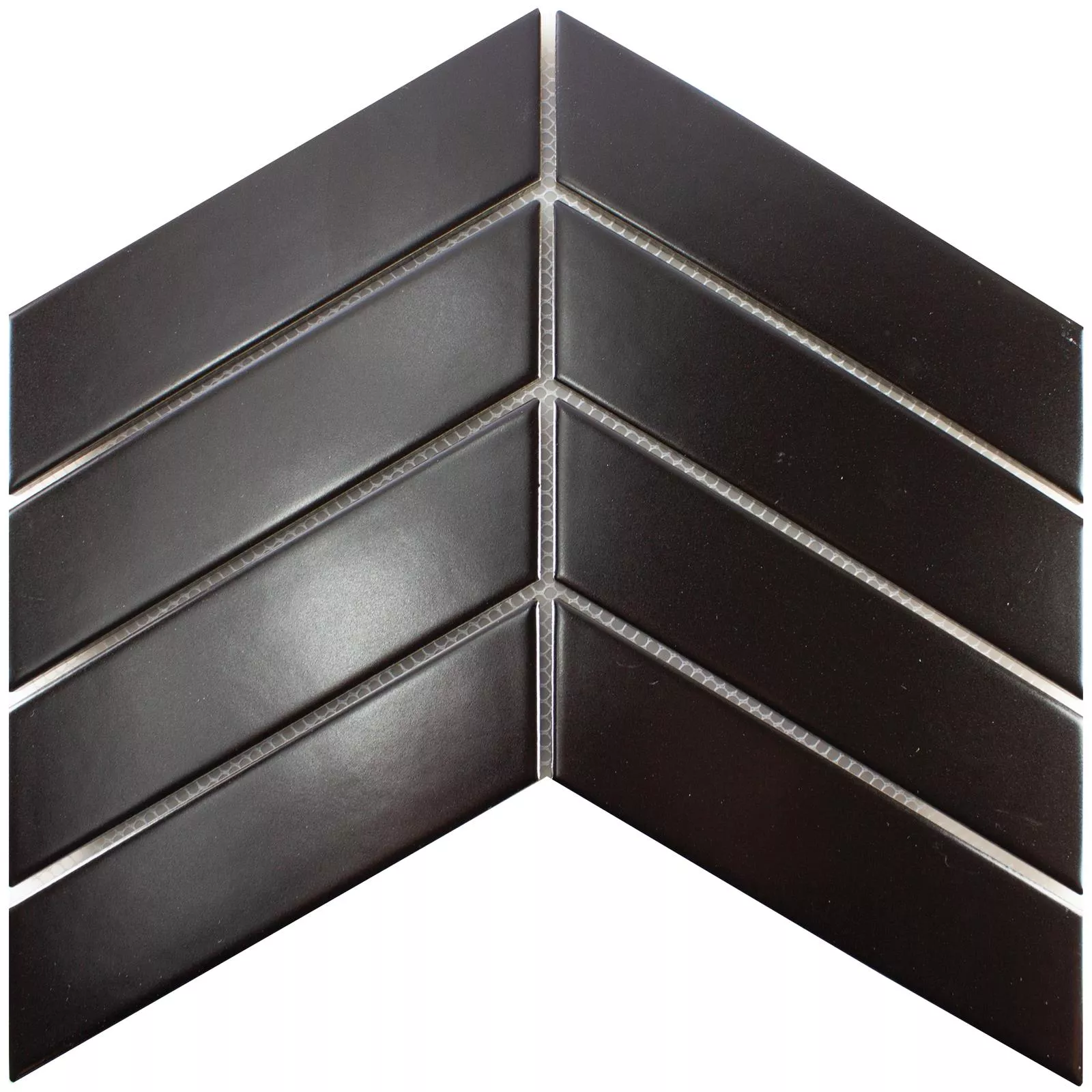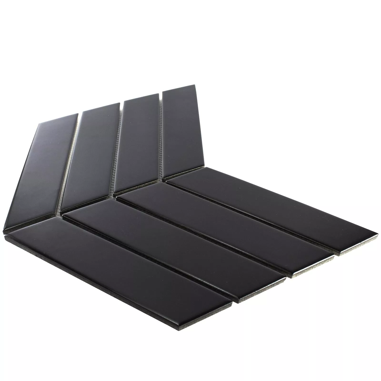 Ceramic Mosaic Tile Artesia Fish Bone Black Mat