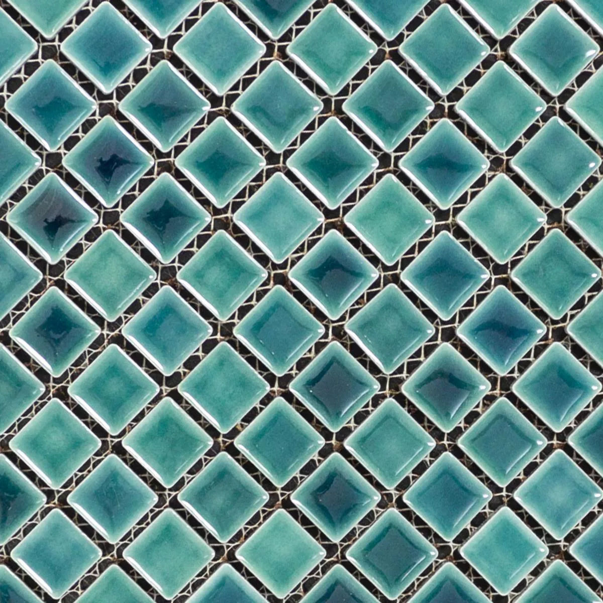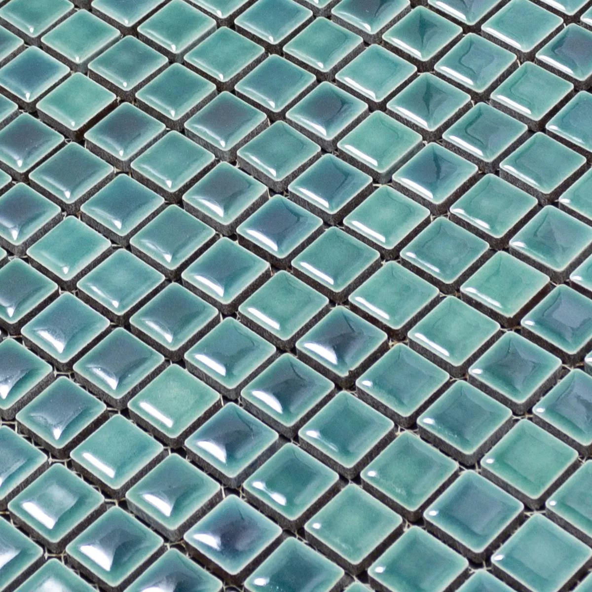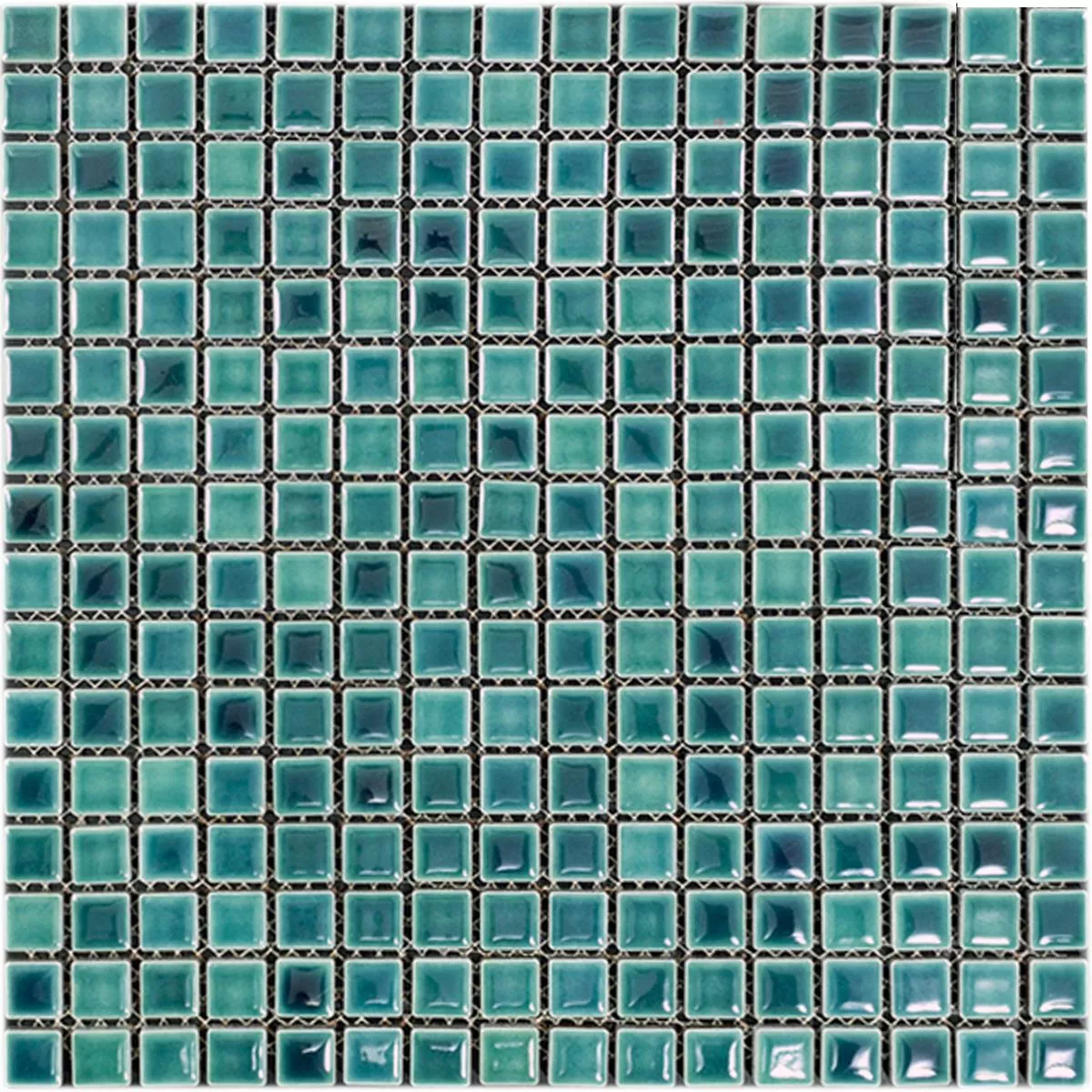 The Lahti ceramic mosaic tile in turquoise and green is an elegant and practical choice for a wide range of interiors. With its glossy surface, it adds a modern touch to shower walls, kitchens, bathrooms, hallways, living rooms, storage rooms and laundry rooms.
