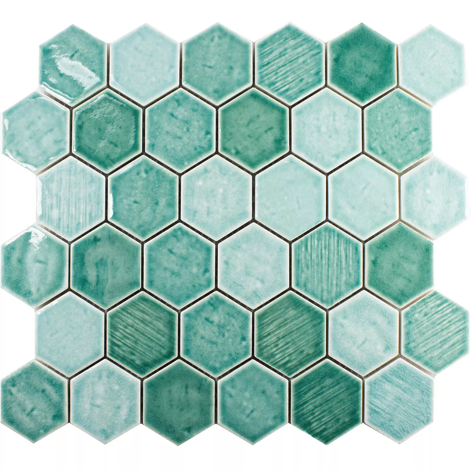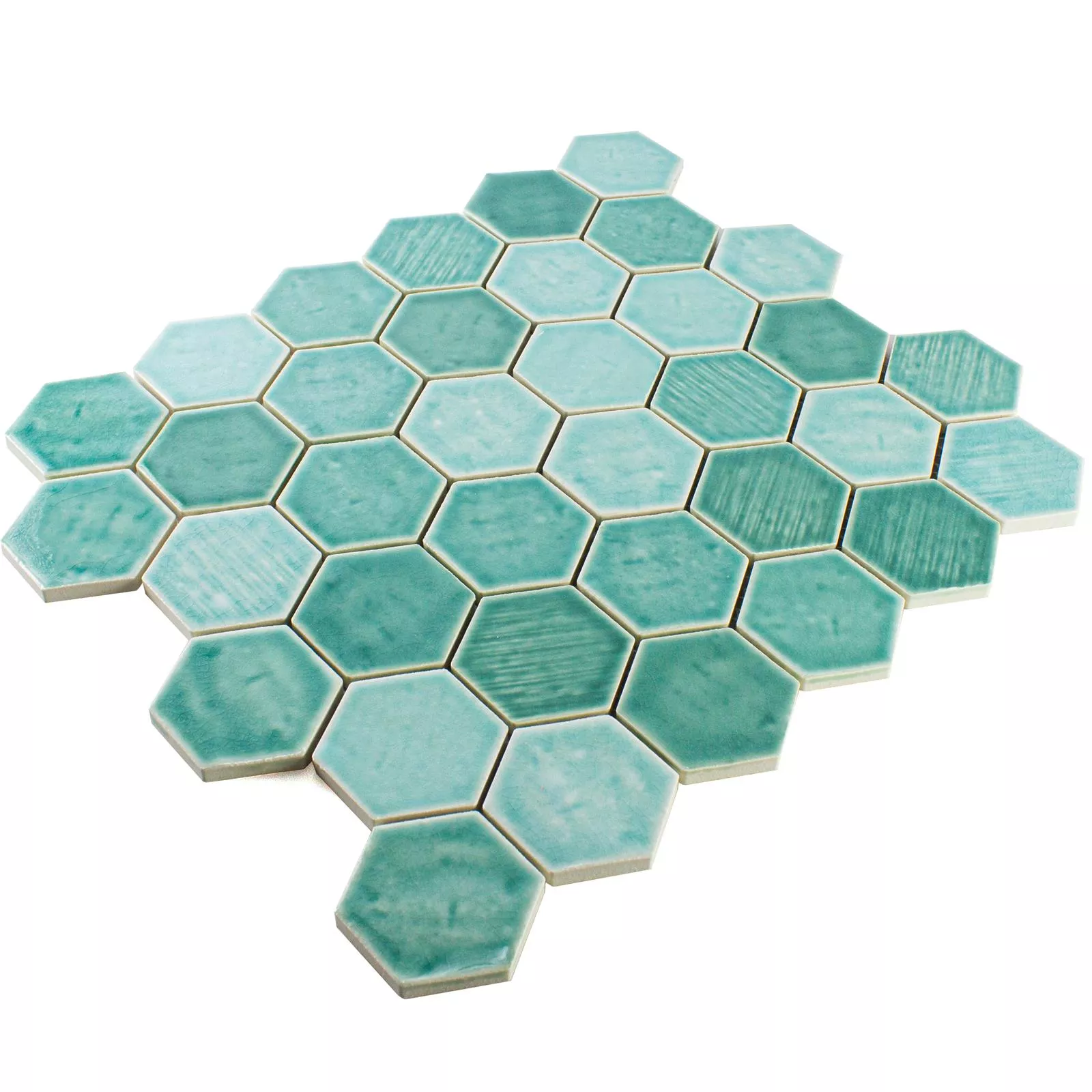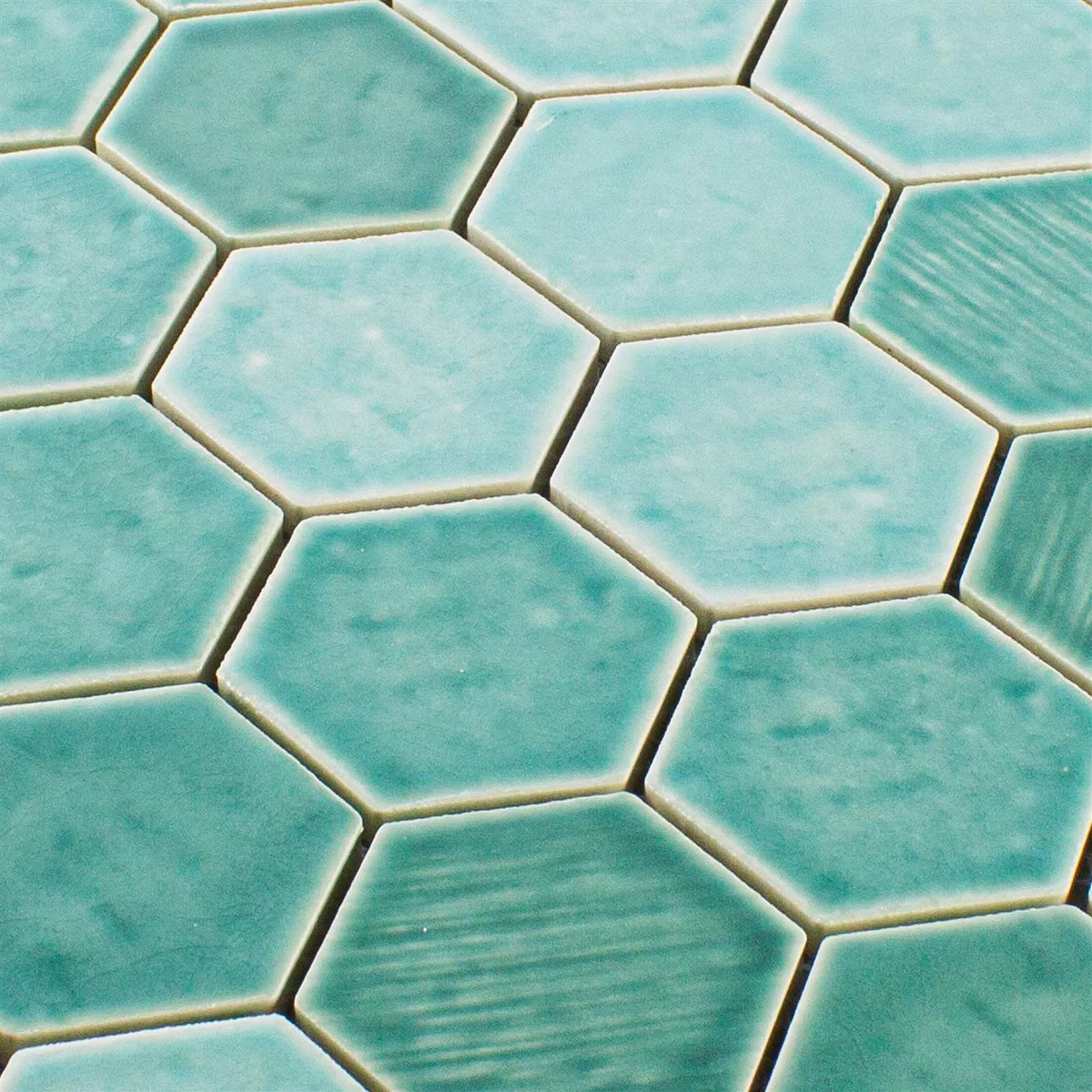 Ceramic Mosaic Tile Roseburg Hexagon Glossy Cyan