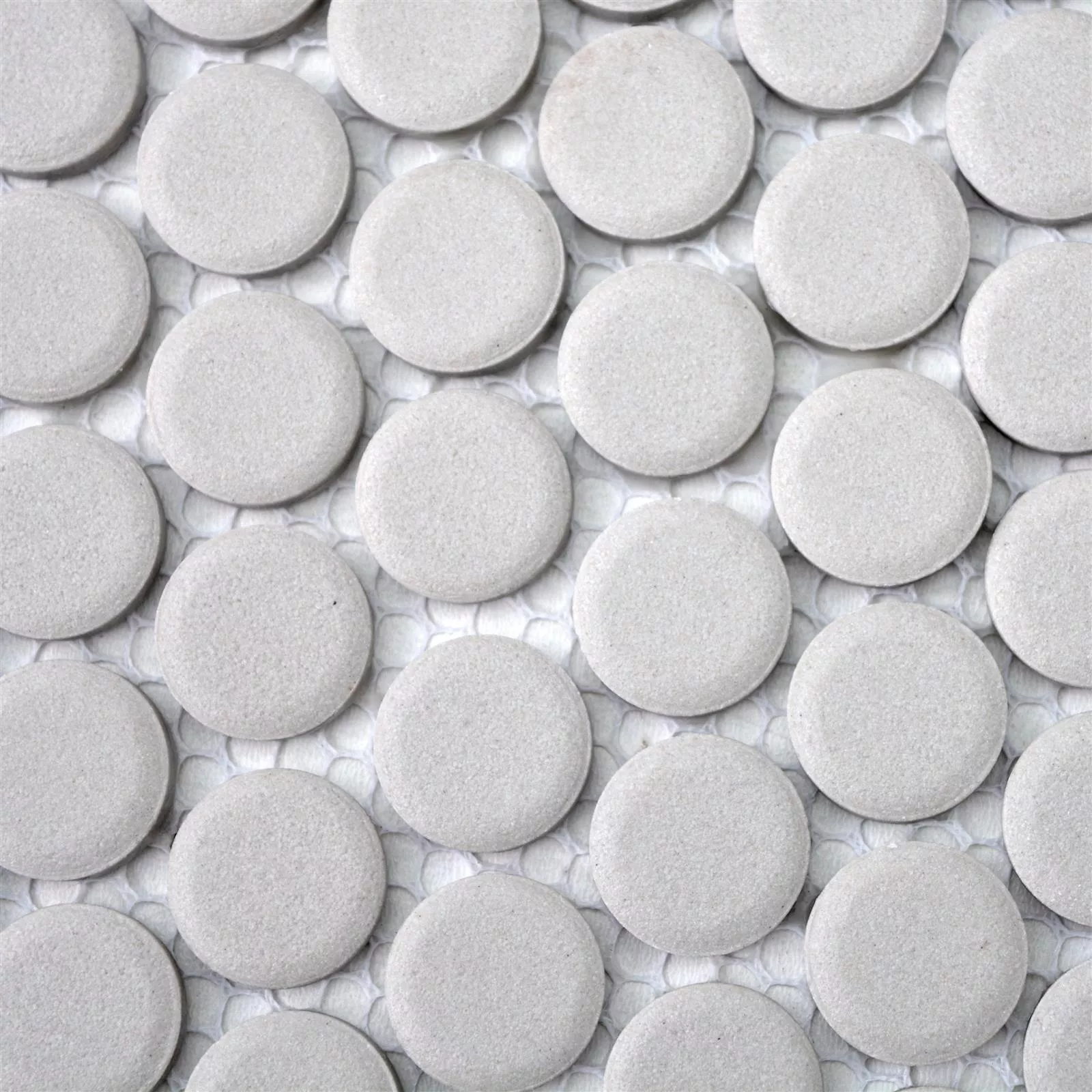 Ceramic Mosaic Tiles Button Radoslov Unglazed Light Grey
