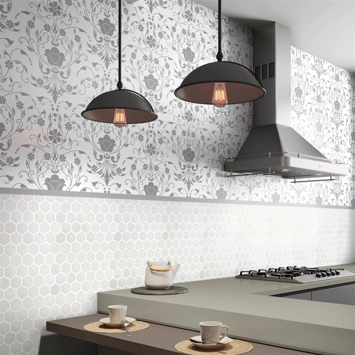 Ceramic Mosaic Tiles Eldertown Hexagon Blanc