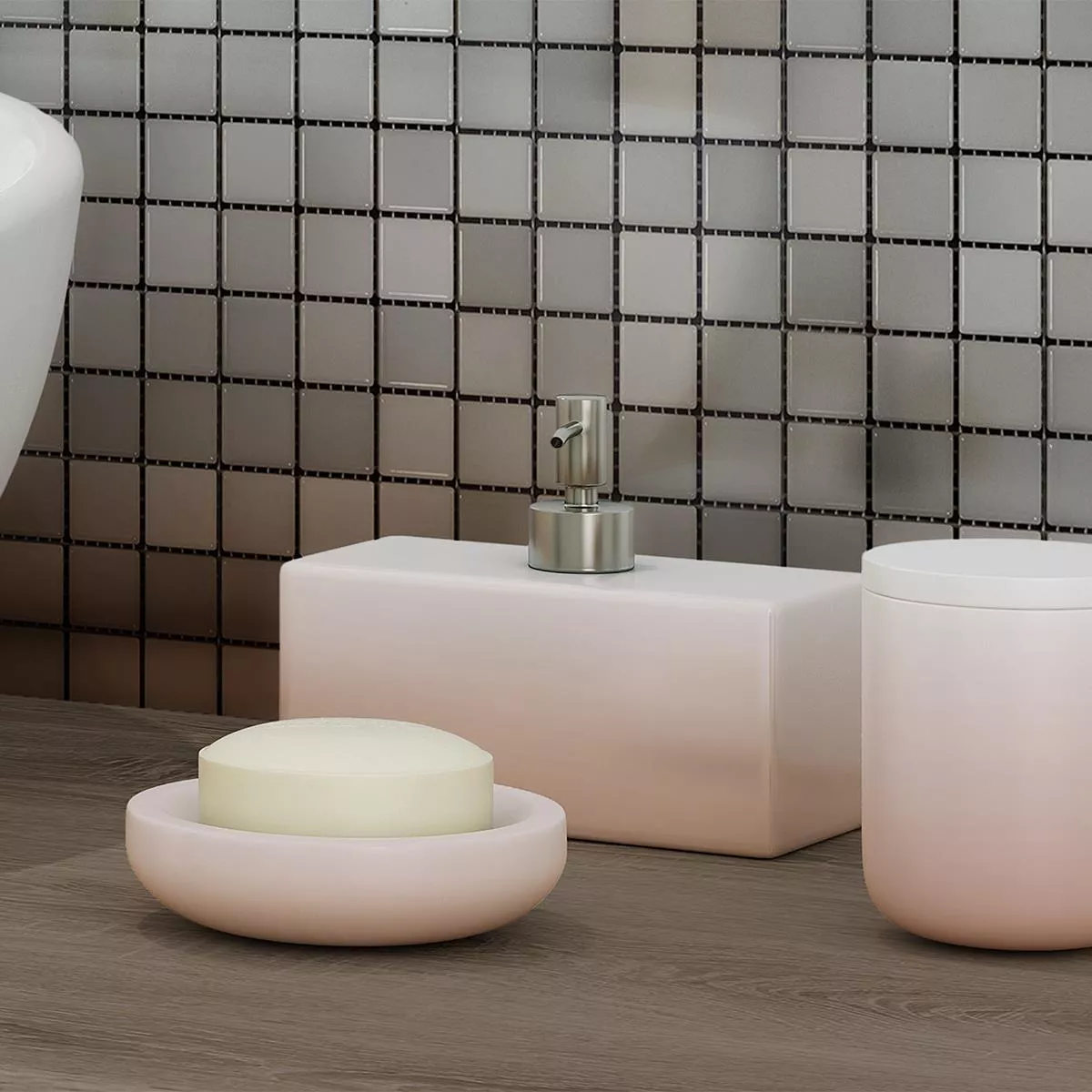 The Galleria ceramic mosaic tile in gray mix offers an elegant and versatile solution for your design ideas with its modern metallic look and matte surface. The tile comes in practical mats measuring 29.7 x 29.7 cm, which are glued to a net ready for installation. With a stone size of 23 x 23 mm and a thickness of 6.5 mm, it can be laid precisely on both walls and floors.