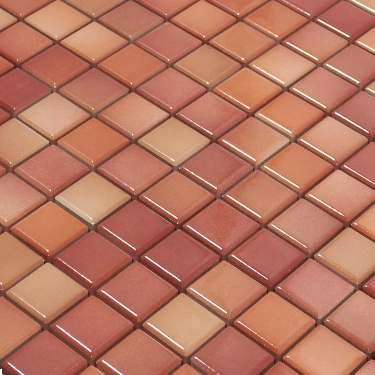 The Galleria ceramic mosaic tile in a vibrant red mix sets impressive accents with its striking metallic look and matte surface. The tile is available in a practical mat measuring 29.7 x 29.7 cm, which is already glued to a net ready for installation. With a stone size of 23 x 23 mm and a thickness of 6.5 mm, the tile can be installed easily and precisely on both walls and floors.