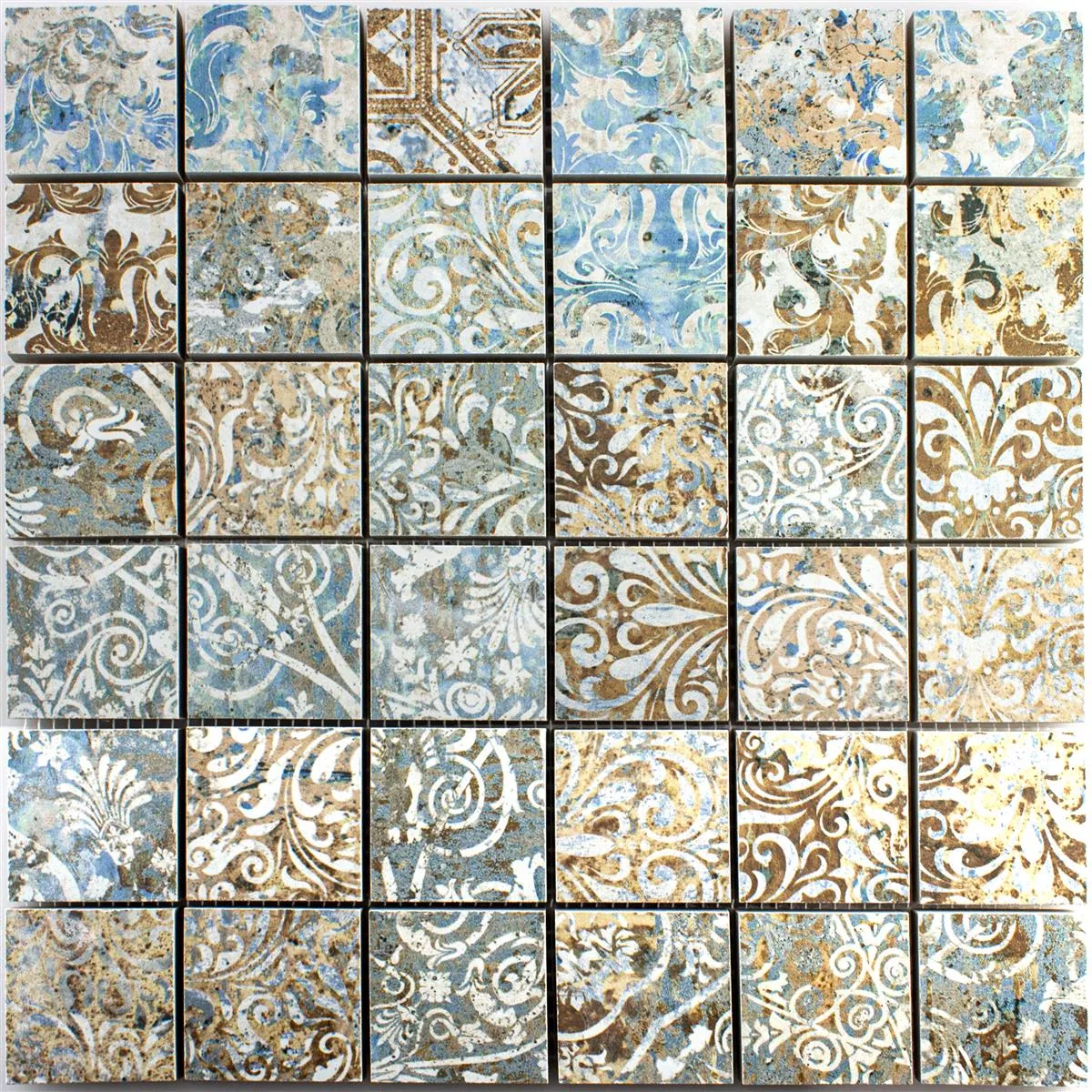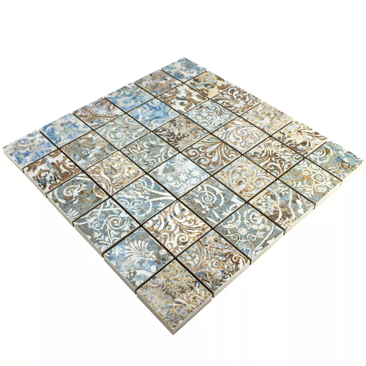 The patchwork mosaic tile in a colorful design made of high-quality porcelain stoneware combines a retro and vintage look with modern functionality. This versatile mosaic tile with its matt, glazed surface is ideal for wall and floor coverings and gives every room a lively and nostalgic atmosphere.