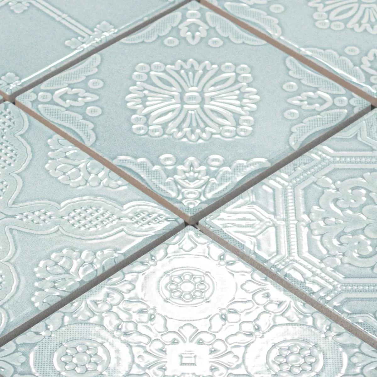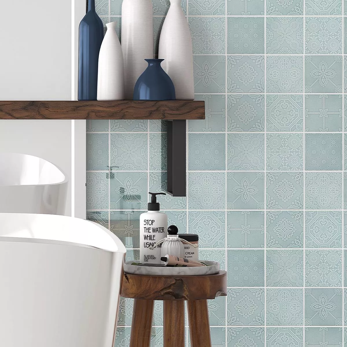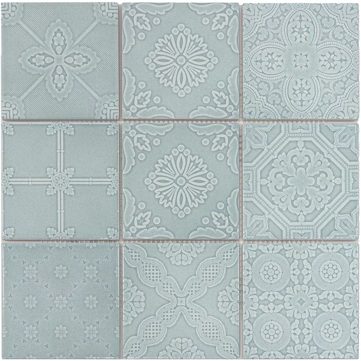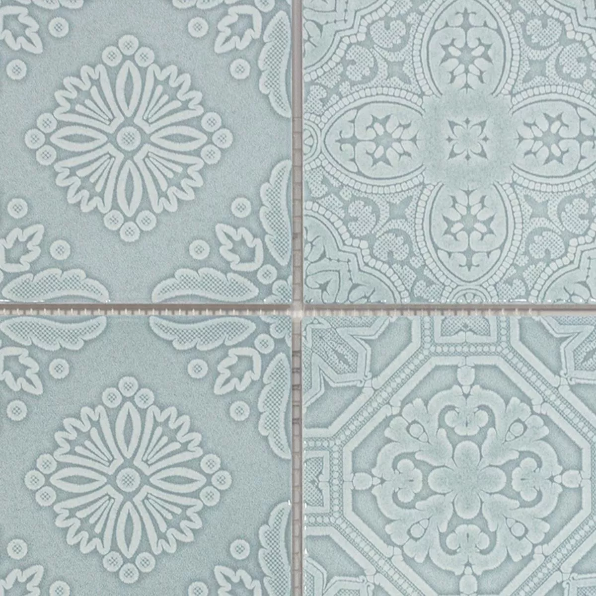 Bring your room to life with the Rivabella Relief Green ceramic mosaic tiles. These floor and wall tiles with a stone size of 97x97mm add retro chic to your living room, kitchen and bathroom. The glossy surface and relief design create a unique aesthetic. With a thickness of 6.5mm and a joint width of 3mm, they offer robustness and easy installation.