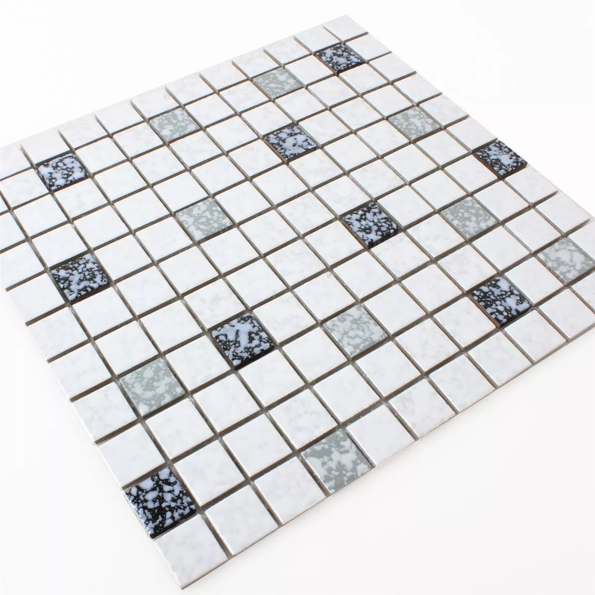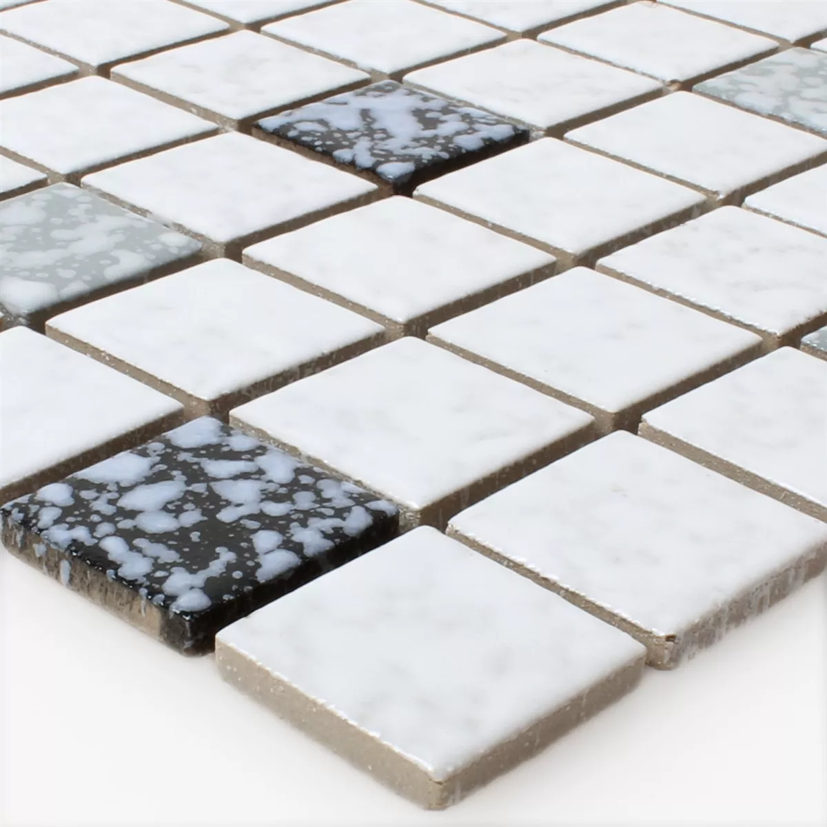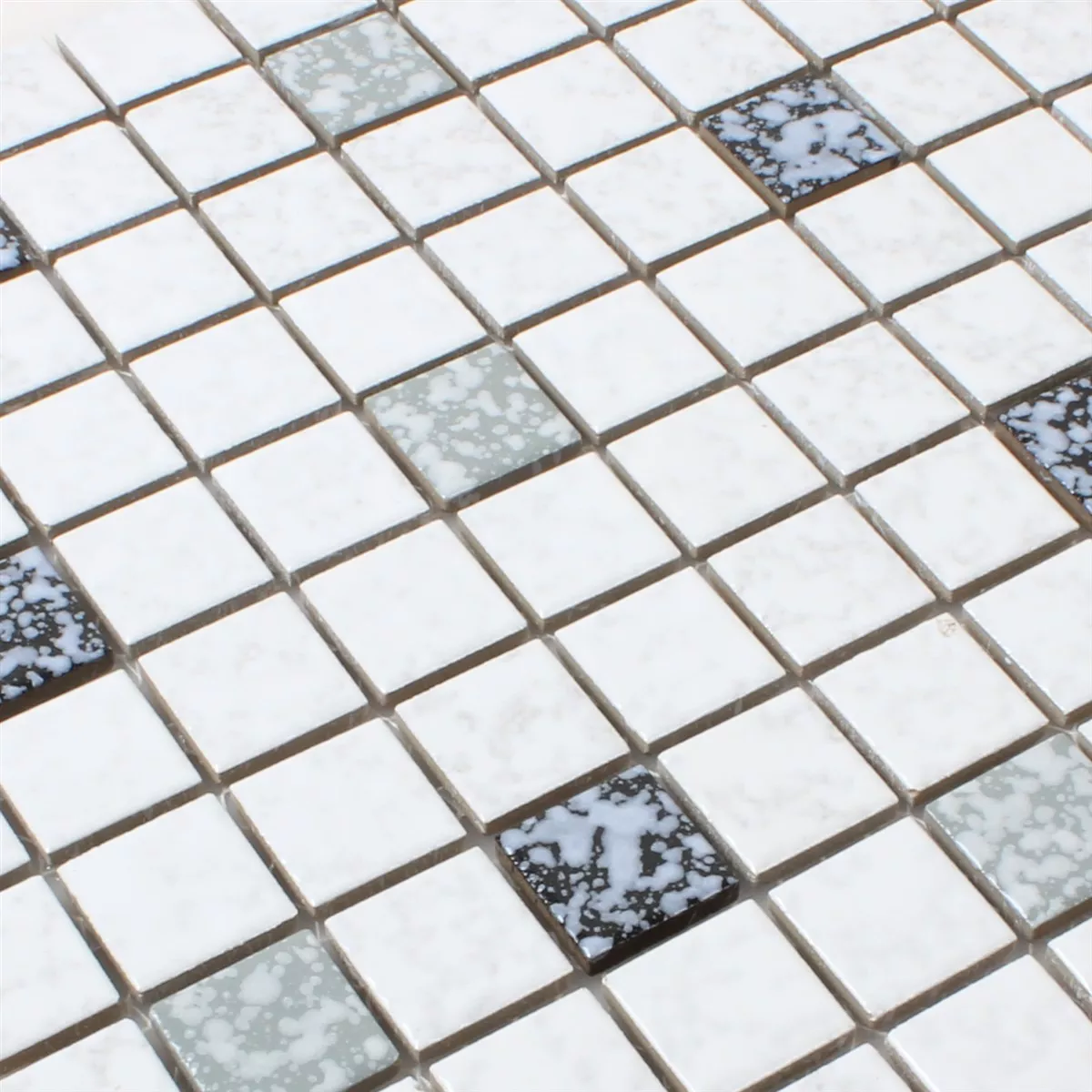 Ceramic Mosaic Tiles Smila Blanc Black Beaten