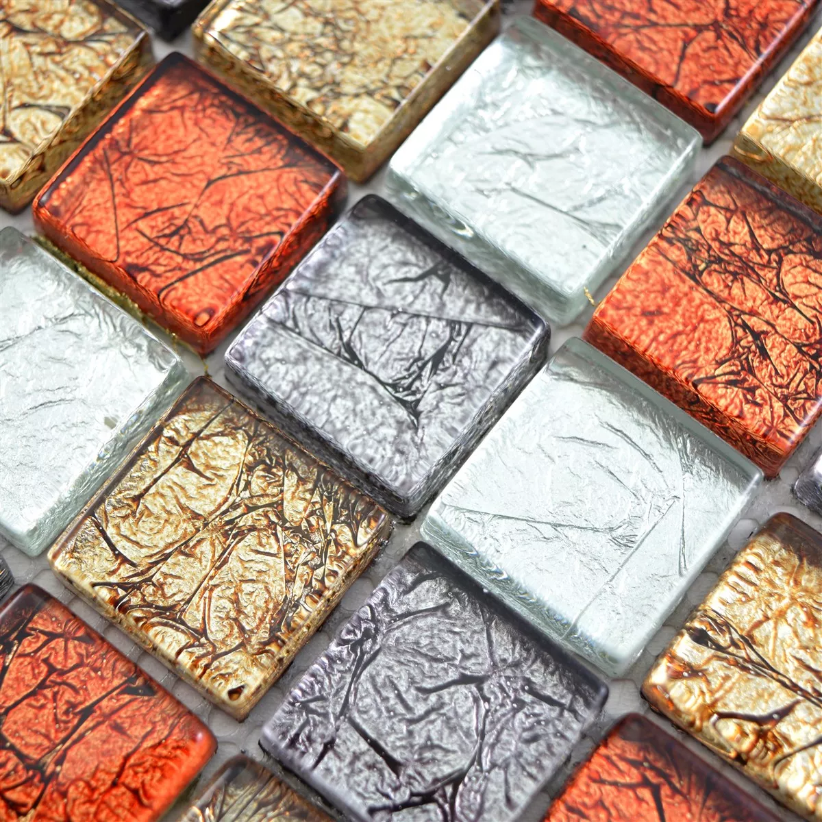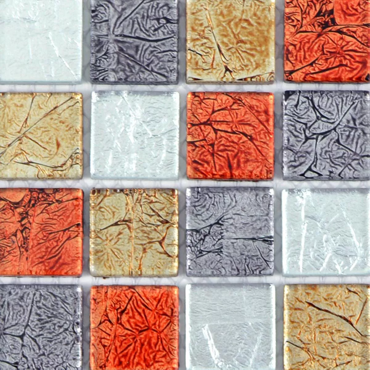 Sample Glass Mosaic Tiles Curlew Red Brown Silver Square