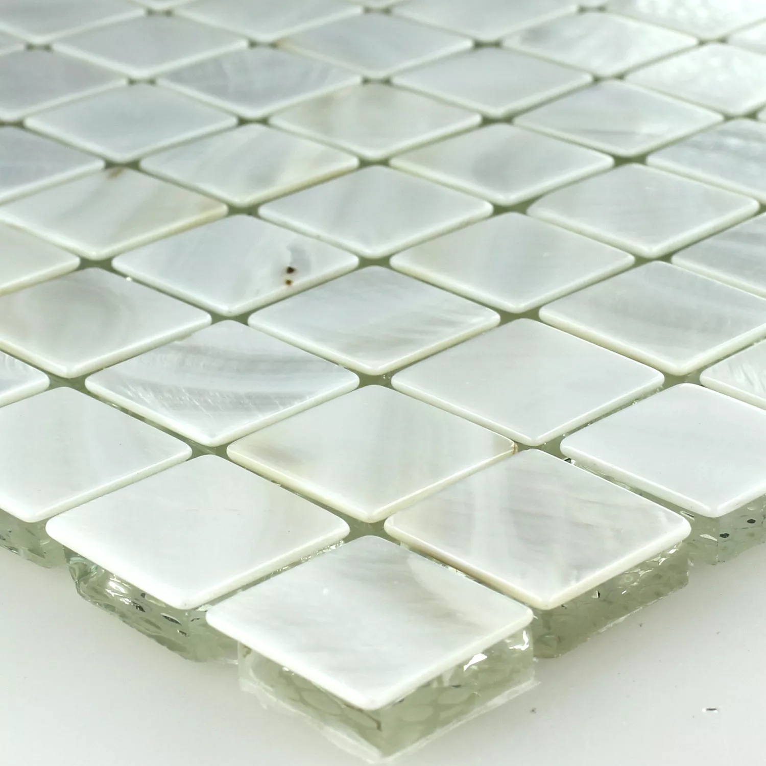 Sample Mosaic Tiles Glass Nacre Effect Ivory White