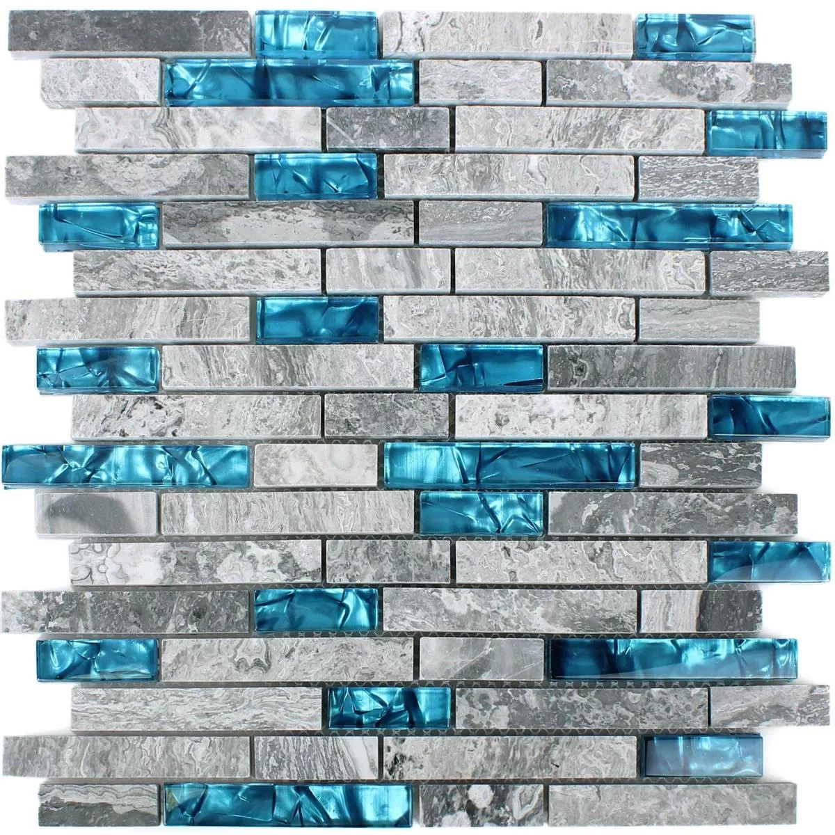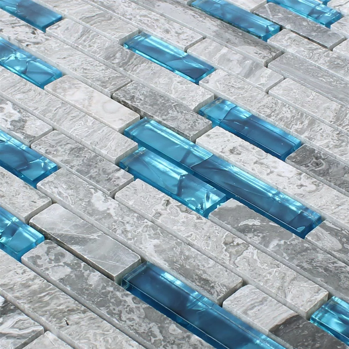Sample Glass Mosaic Natural Stone Tiles Sinop Grey Blue