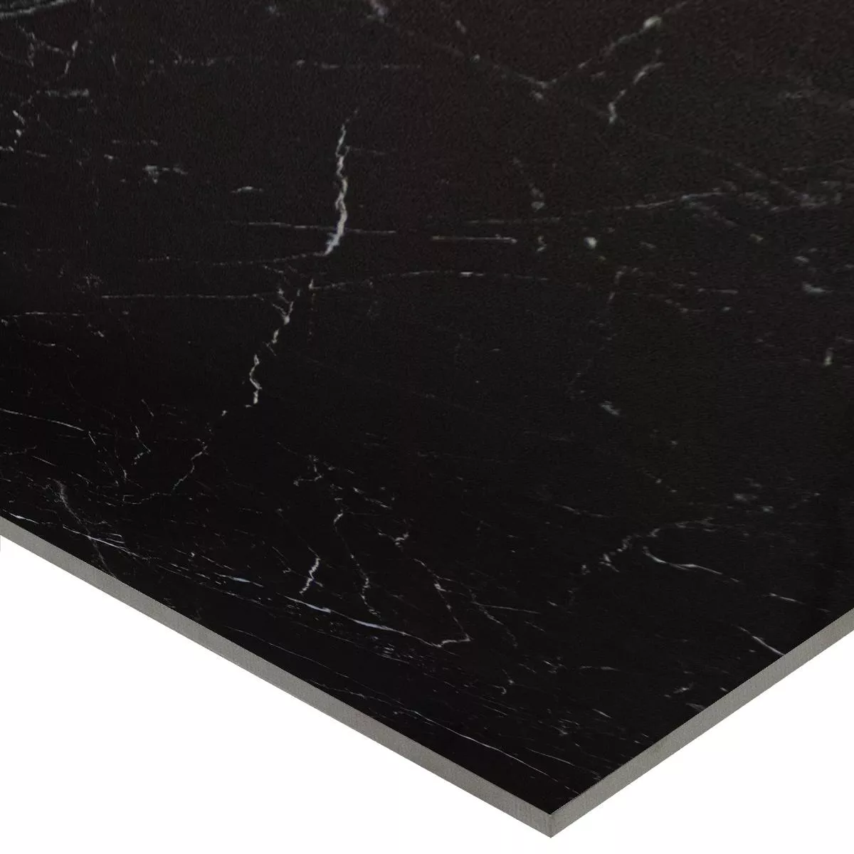 Floor Tiles Cardiff Marble Optic Polished Black White 60x120cm