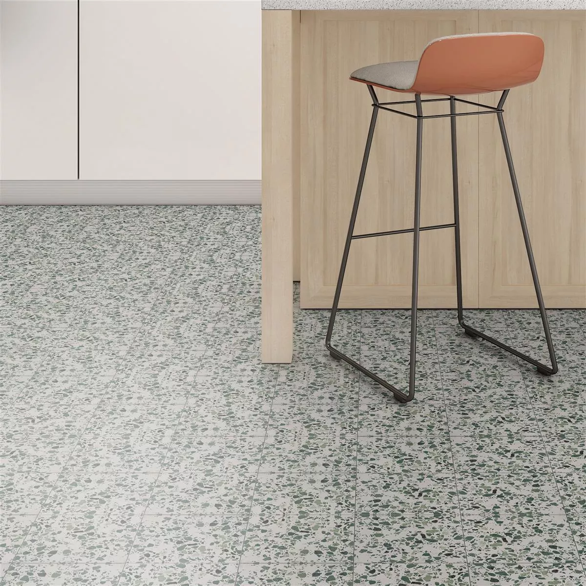 With the Liberty Green floor tiles 18.5x18.5cm you not only bring a harmonious shade of green into your rooms, but also a successful combination of retro look and stone aesthetics. These tiles made of high-quality porcelain stoneware have a matt finish, which not only creates an elegant appearance, but also has practical properties.