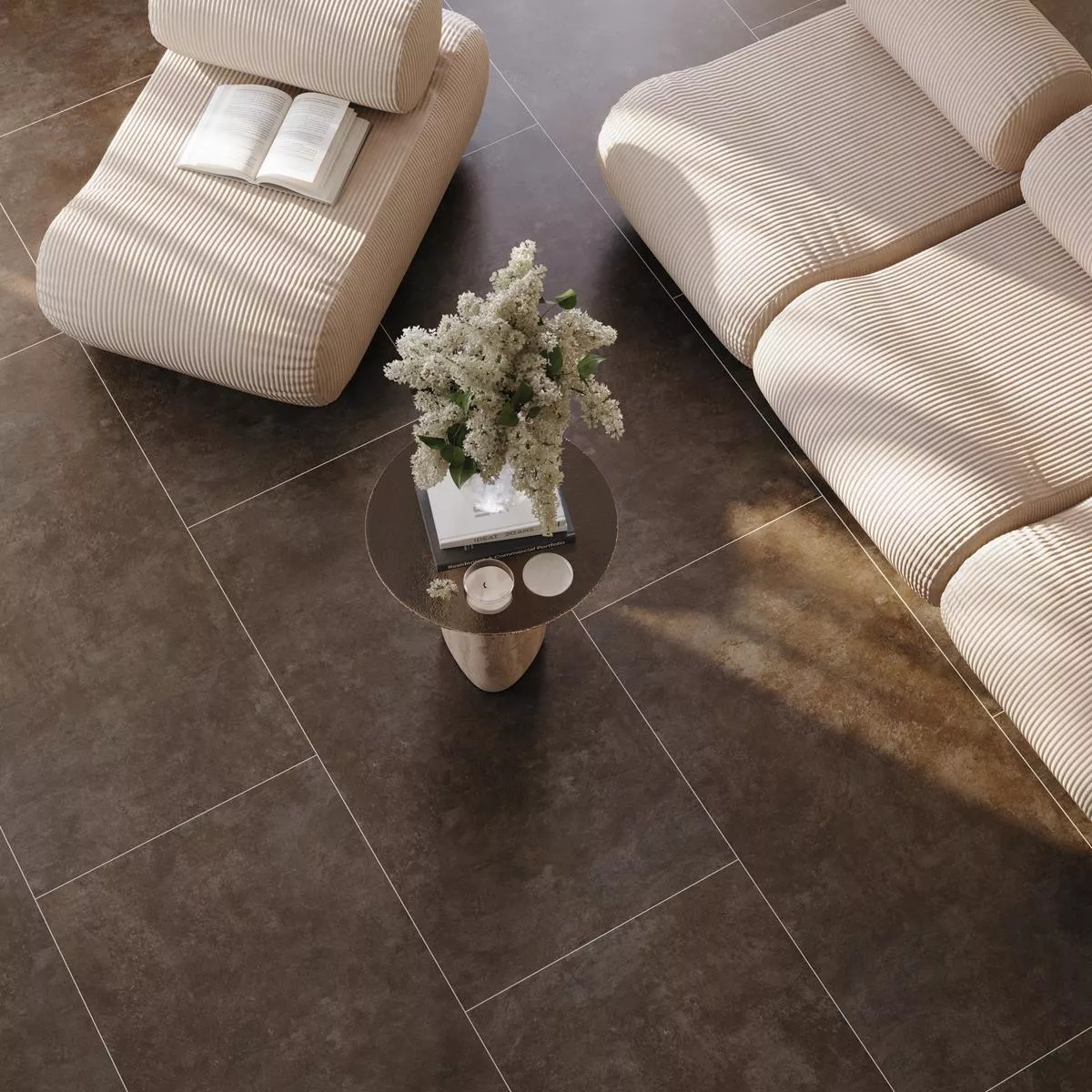 The Triton porcelain stoneware floor tile in elegant brown impresses with its modern concrete look and gives living rooms and outdoor areas a stylish, contemporary atmosphere. With its generous format of 60 x 120 cm and the matt, glazed surface, it creates a harmonious overall picture that looks great in both minimalist and cozy interior design concepts.