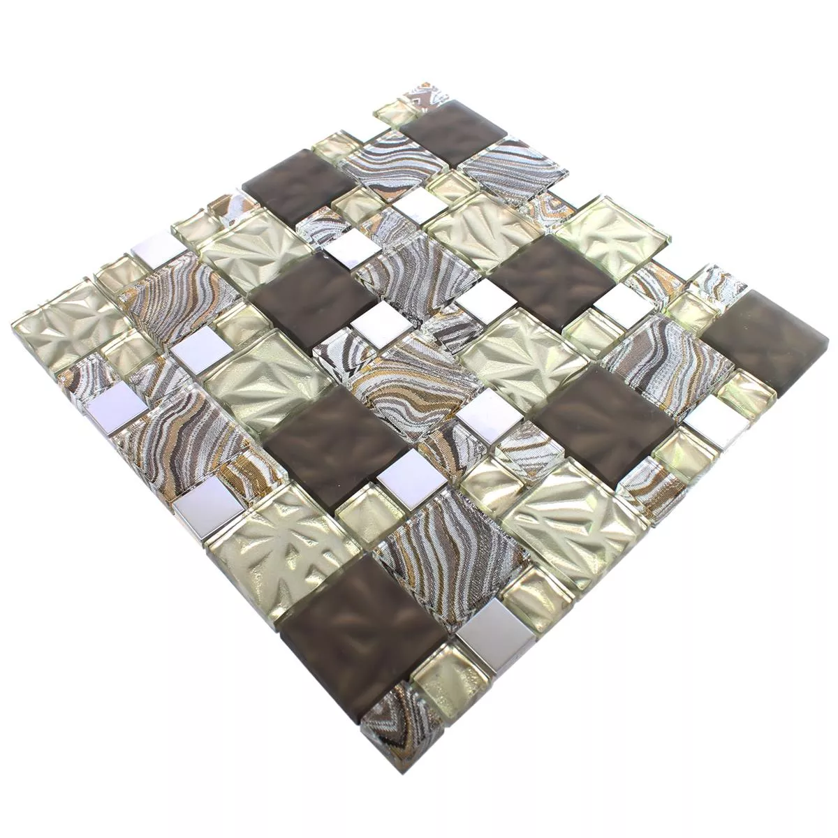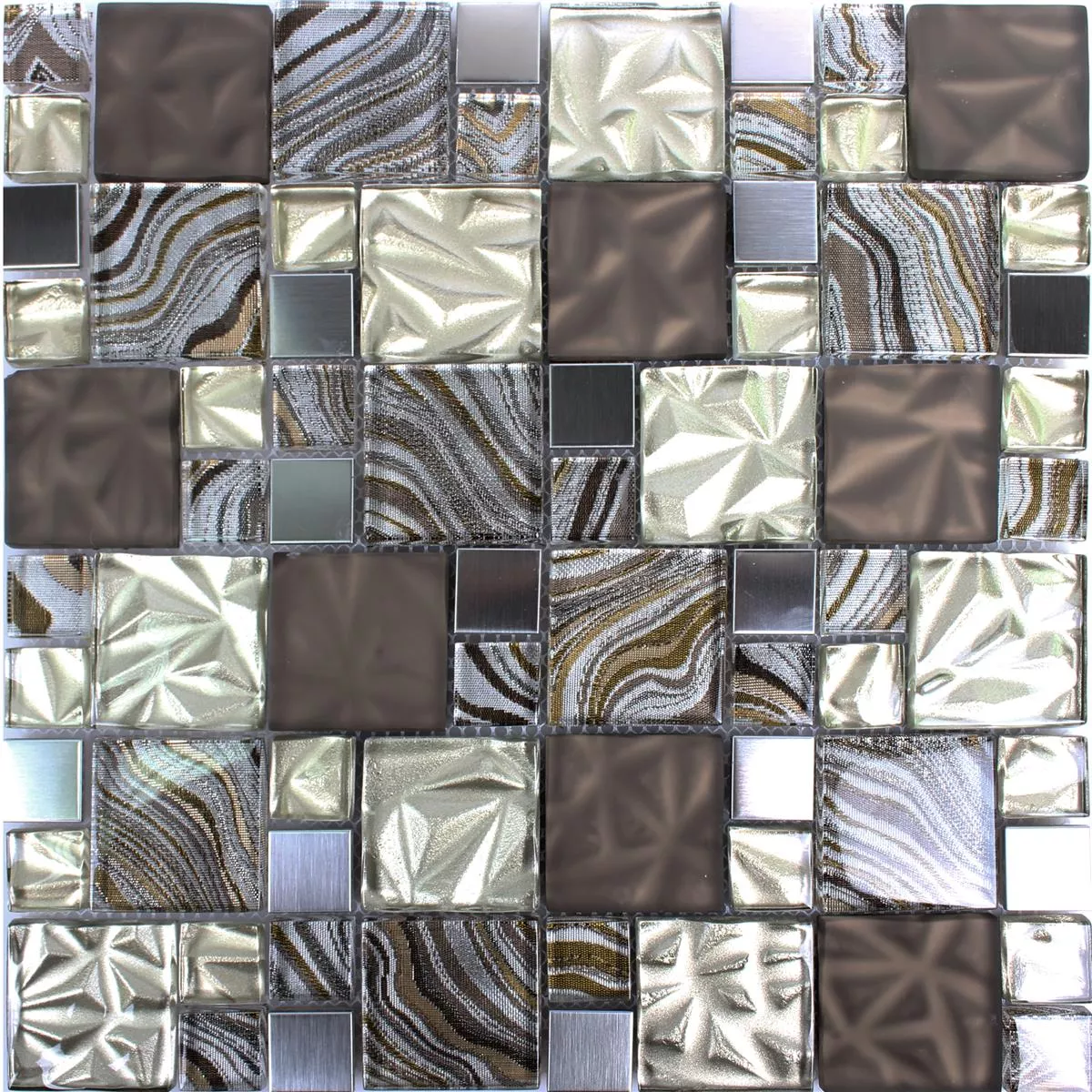 Glas Metall Stainless Steel Mosaic Tiles Zadar Beige Brown