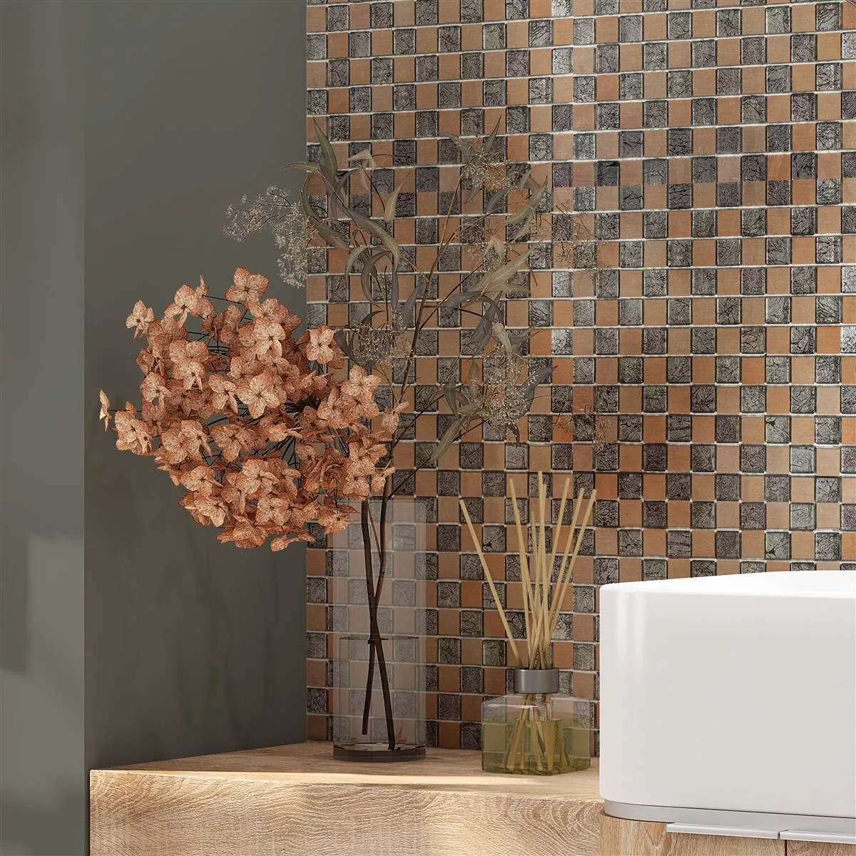 Glass Aluminium Mosaic Tiles Eldorien Copper-Grey