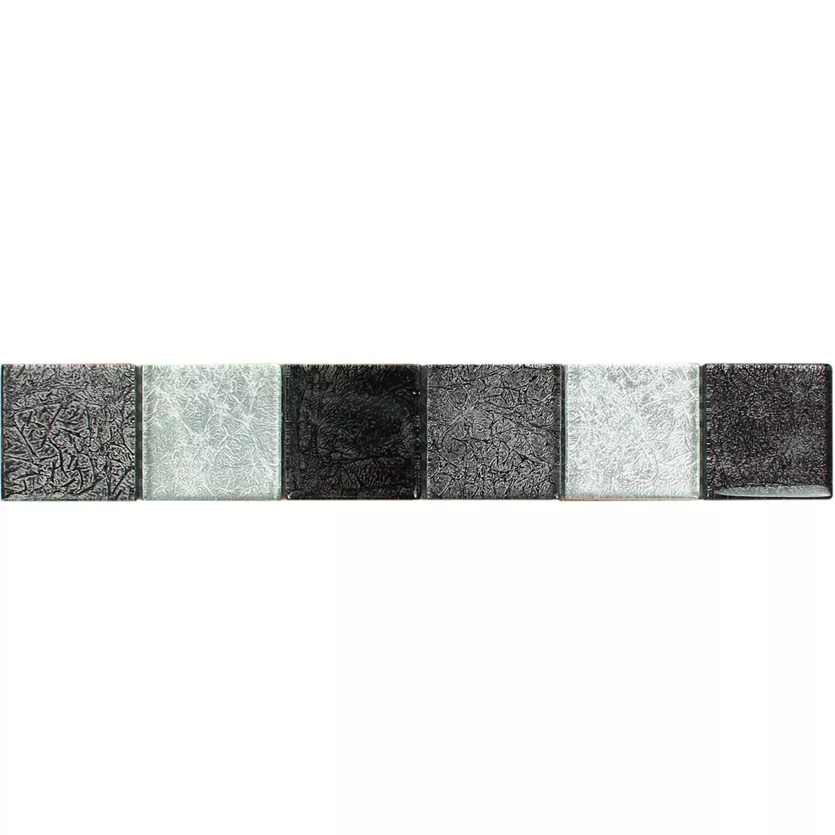 Glas Fliesenbordüre Johnstown Schwarz Silber Q23