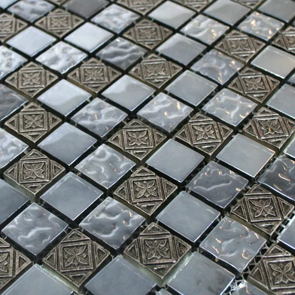 Glass Marble Effect Mosaic Tiles Silver Sail