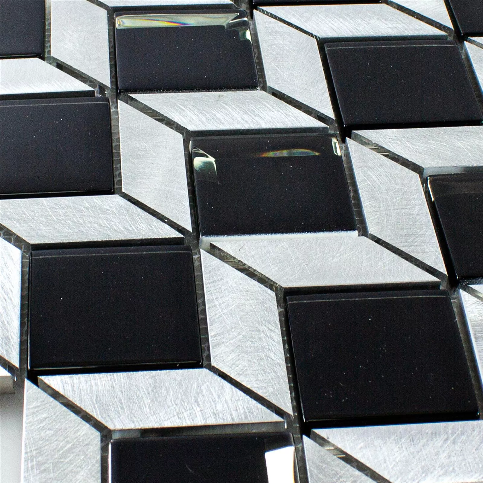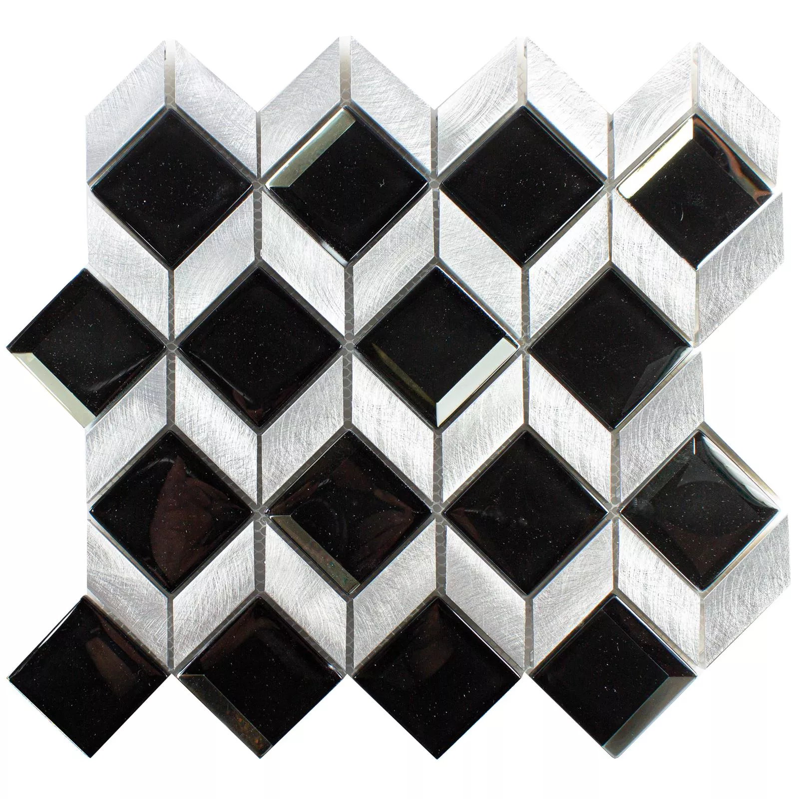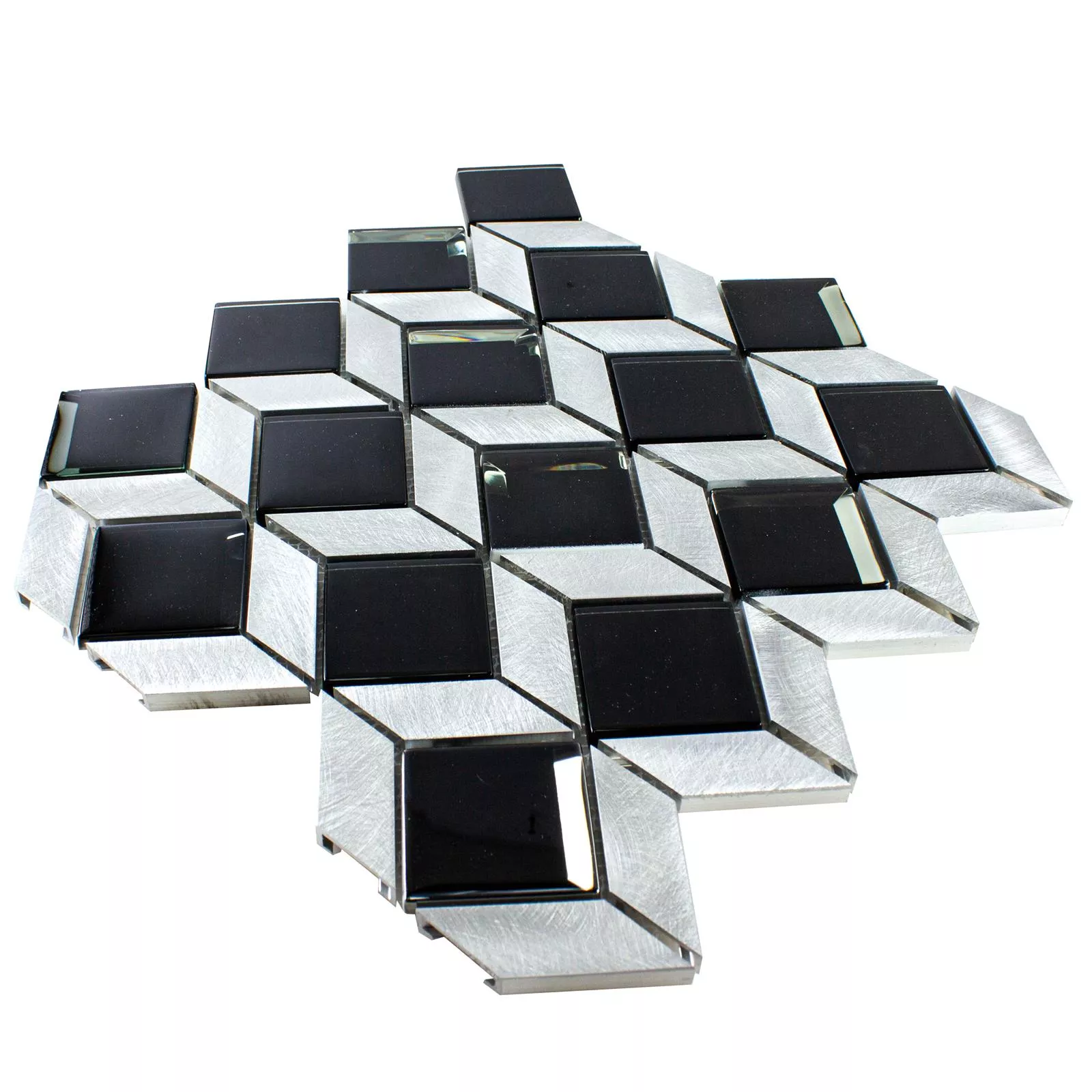 Glass Metal Mosaic Tiles Tanja Black Silver Cube