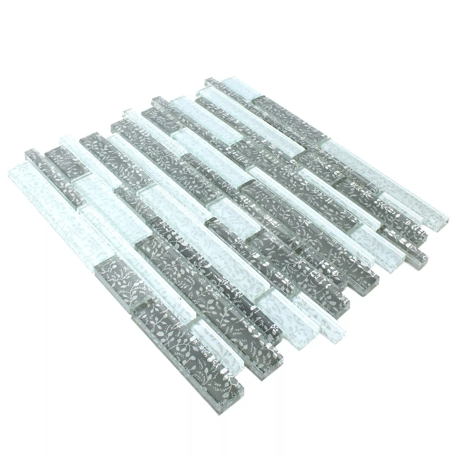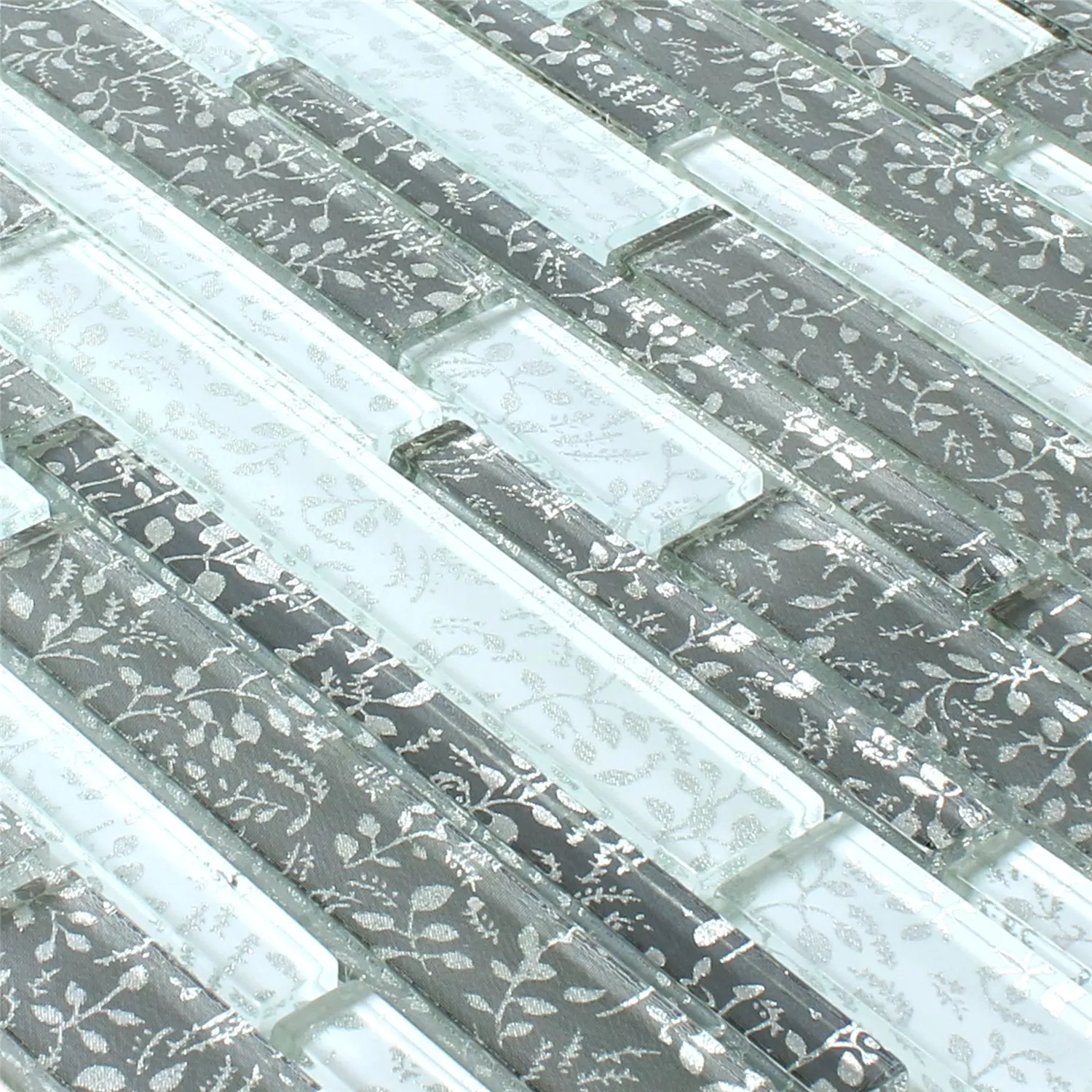 Retro and vintage are really popular and the glass mosaic Cliff Grau Weiss Flower corresponds exactly to this attitude to life. In particular, the combination of vintage and modern creates an attractive contrast with these mosaic tiles. The glossy surface of the mosaic and the interplay of the colors white, gray and silver make the mosaic tiles an eye-catcher. The differently colored glass rods are offset from each other and thus create a varied pattern. These mosaic tiles can be used as wall tiles throughout the house, even in the wet areas of the kitchen and bathroom. But also as a decoration within the house, the tiles create a focal point.
