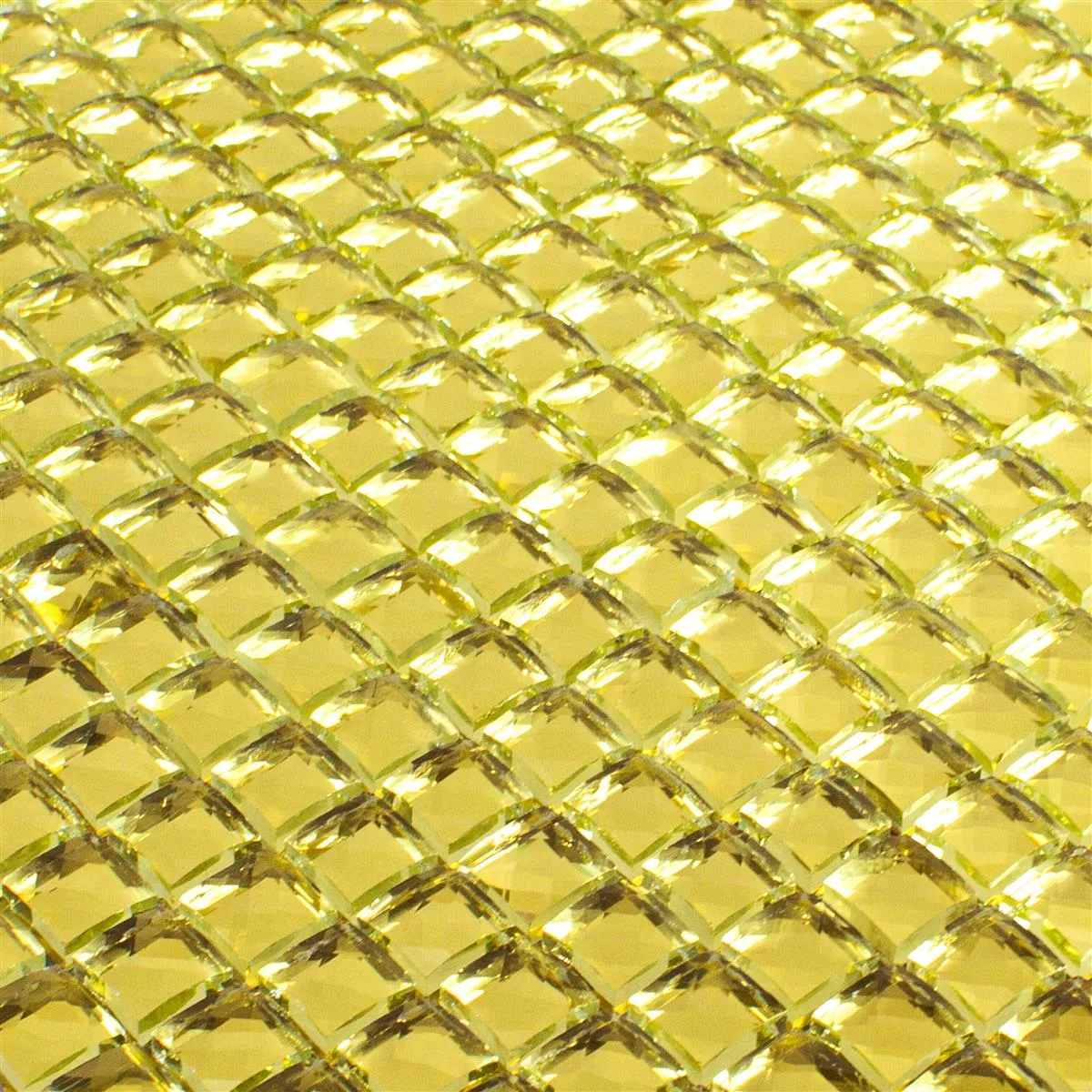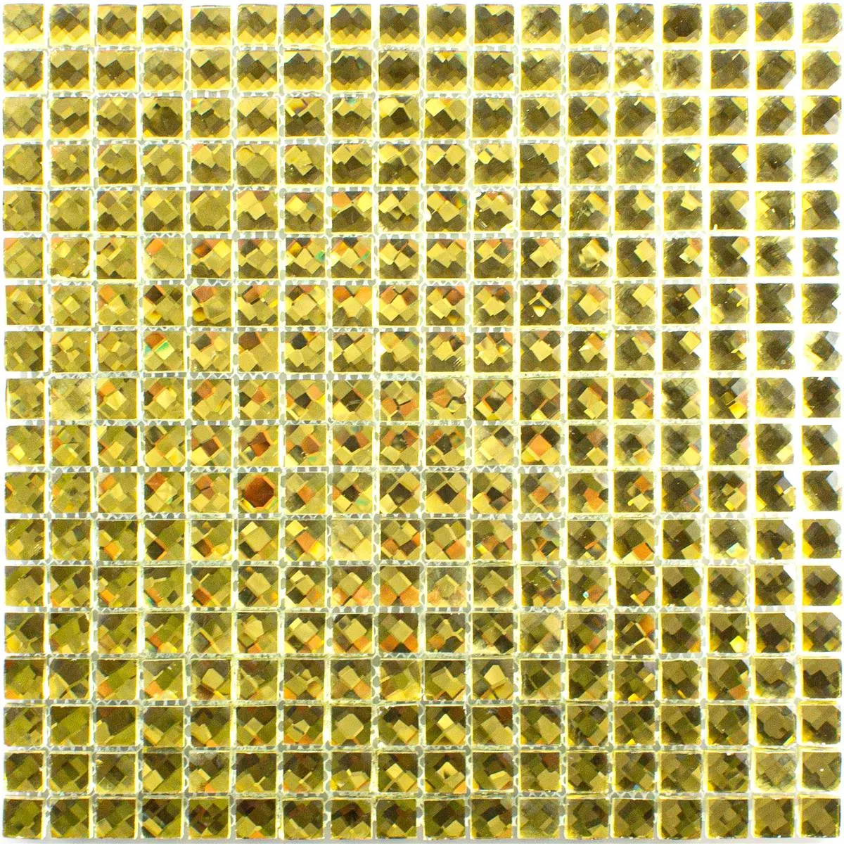 The tiles are in a luxurious gold tone and are made of high-quality glass. The glossy surface and the striking 3D look give every room a special depth and light reflection. Each tile has a stone size of 15 x 15 mm and a thickness of 8 mm. The tile mat measures 30 x 30 cm and covers an area of 0.090 m².