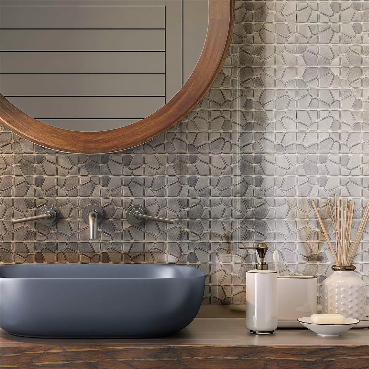 Every tile and every mosaic have different requirements for trimming, laying and und processing due to individual material characteristics and usage conditions. Please ask a local expert for correct and secure laying of your mosaics or tiles. We are not liable for unprofessional usage and faulty workmanship of constructions materials.