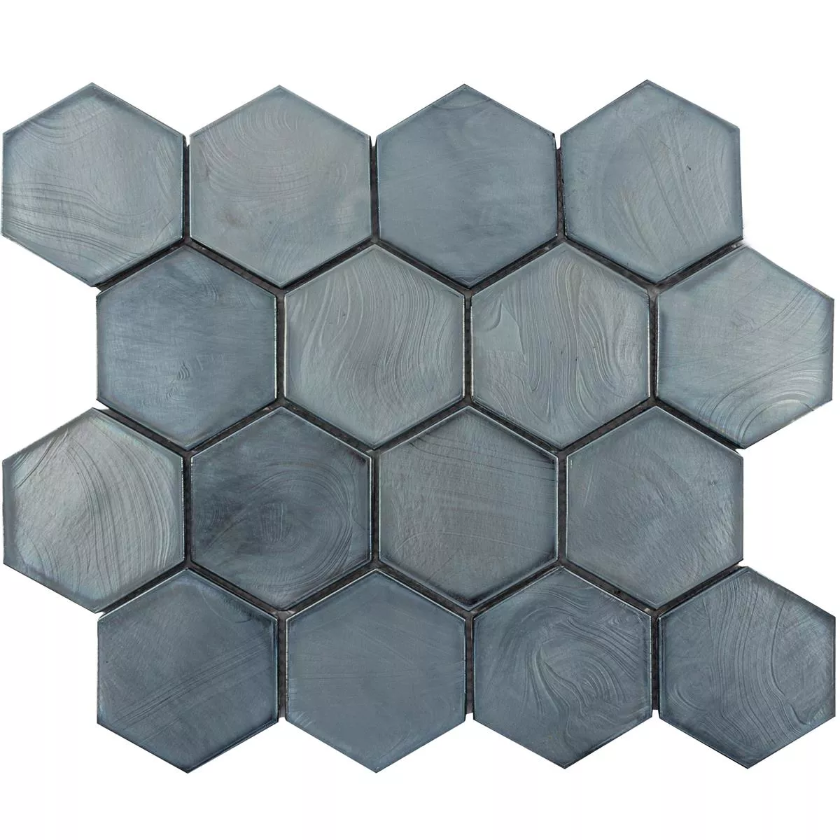 The tiles have a stone size of 73x83mm and a thickness of 6mm. The tile or mat size is 26x29.6cm, with one mat covering an area of 0.077m². The hexagon format, the joint width of 3mm and the weight of 1.23 kg per piece make handling easy.