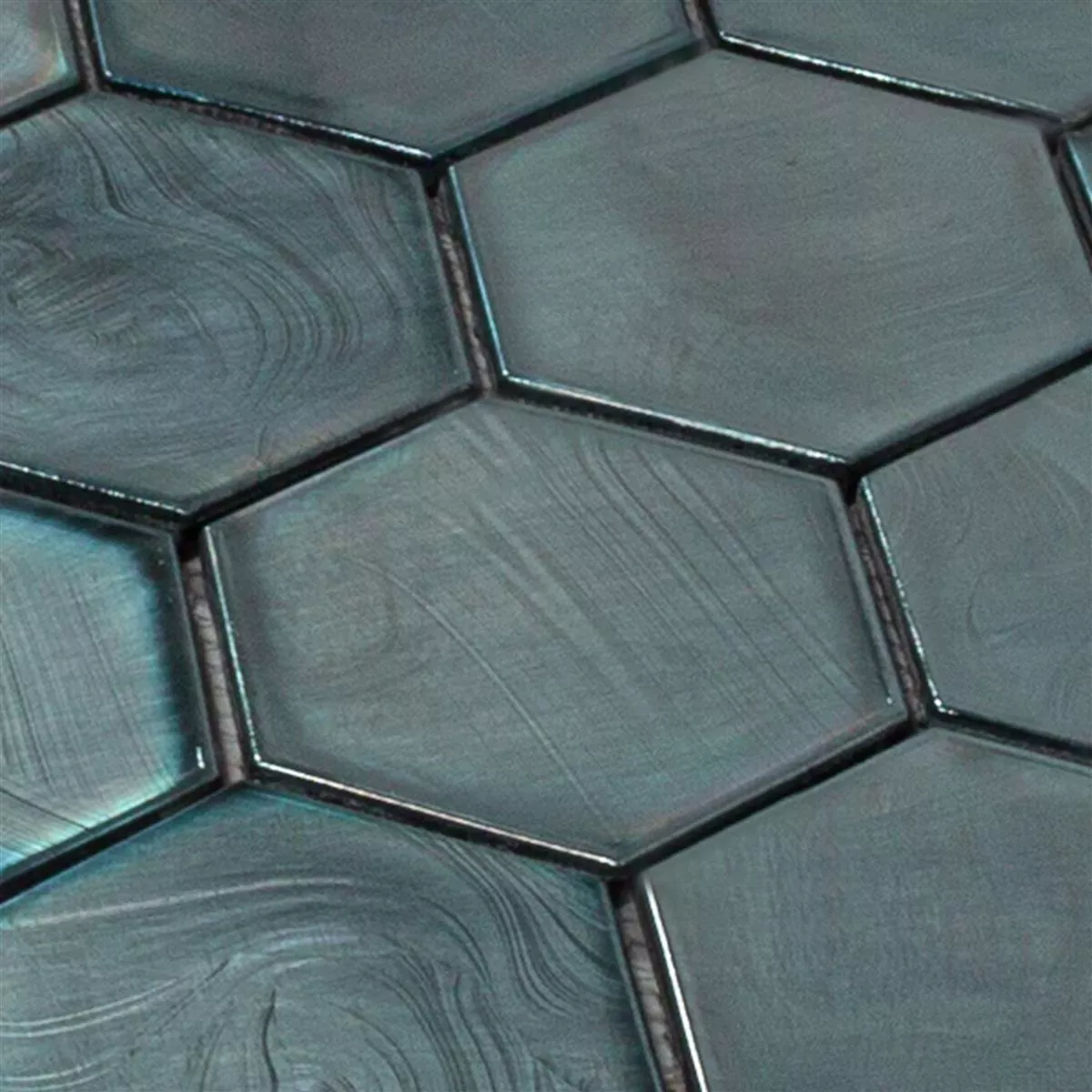 The glass mosaic tiles Andalucia Hexagon Black are modern wall tiles made of high-quality glass. In a deep black, they give rooms such as the bathroom, kitchen, living room and shower an attractive design. The shiny surface with a mother-of-pearl effect gives the tiles an elegant look.