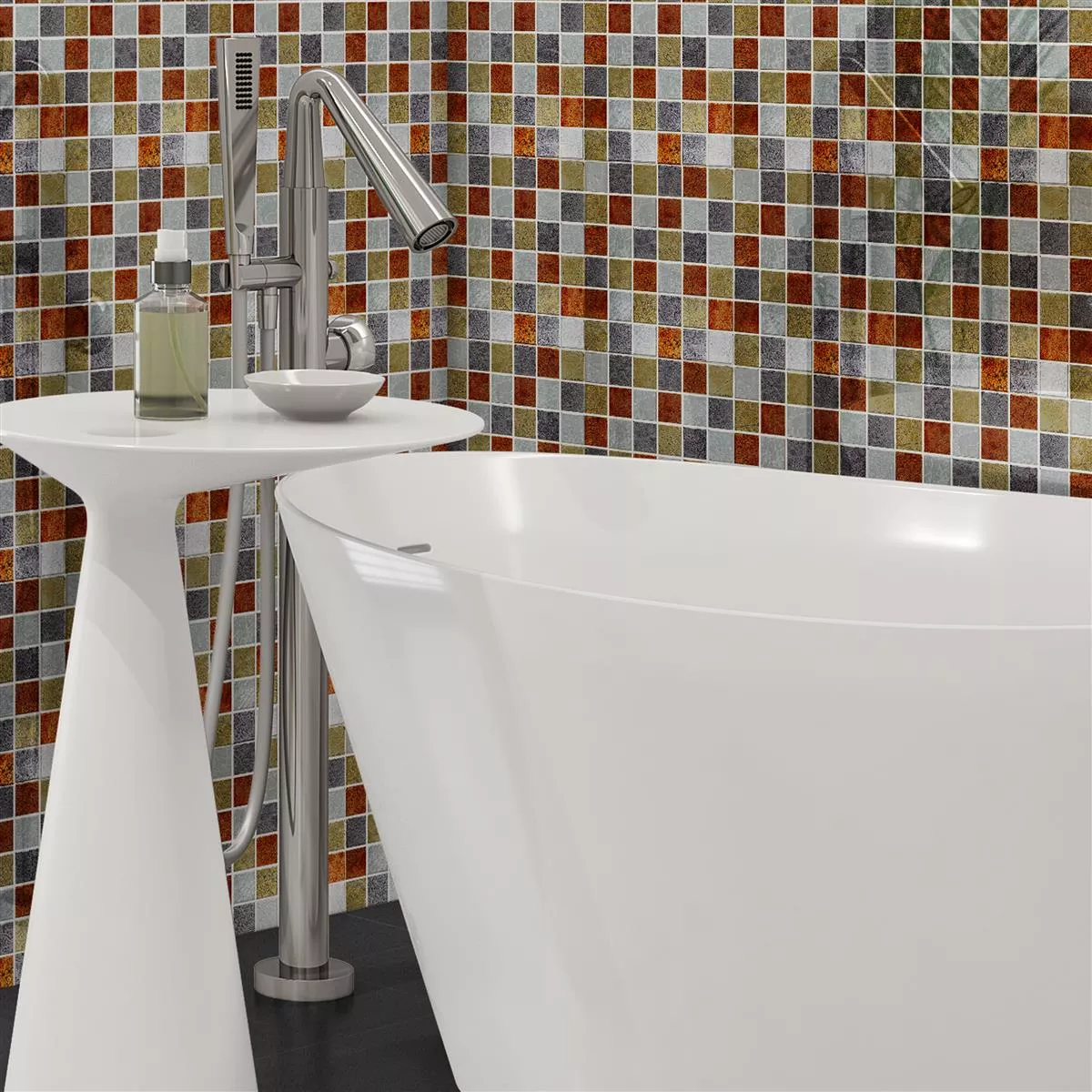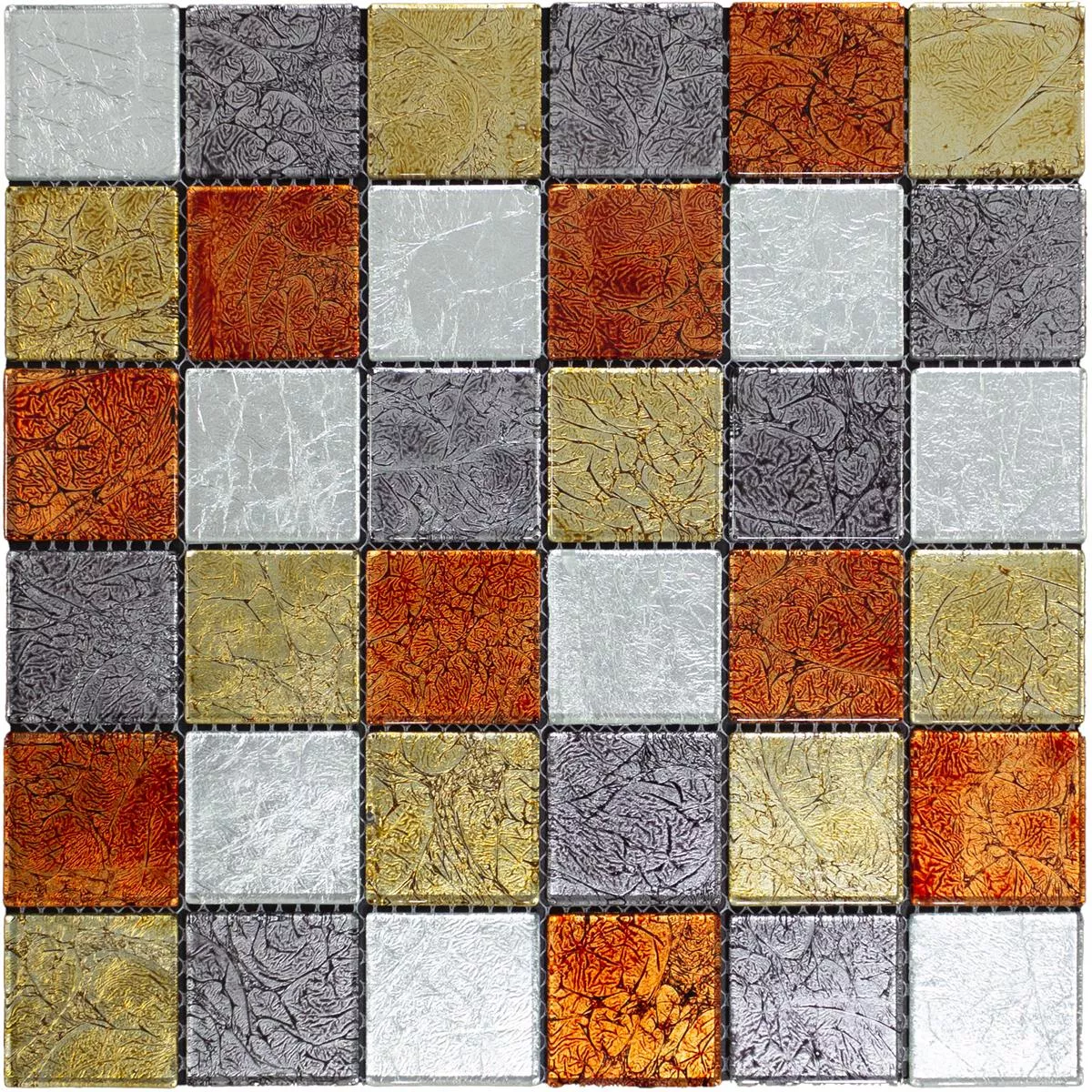 Glass Mosaic Tiles Curlew Red Brown Silver Q48 4mm