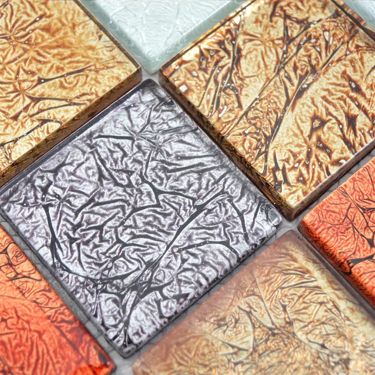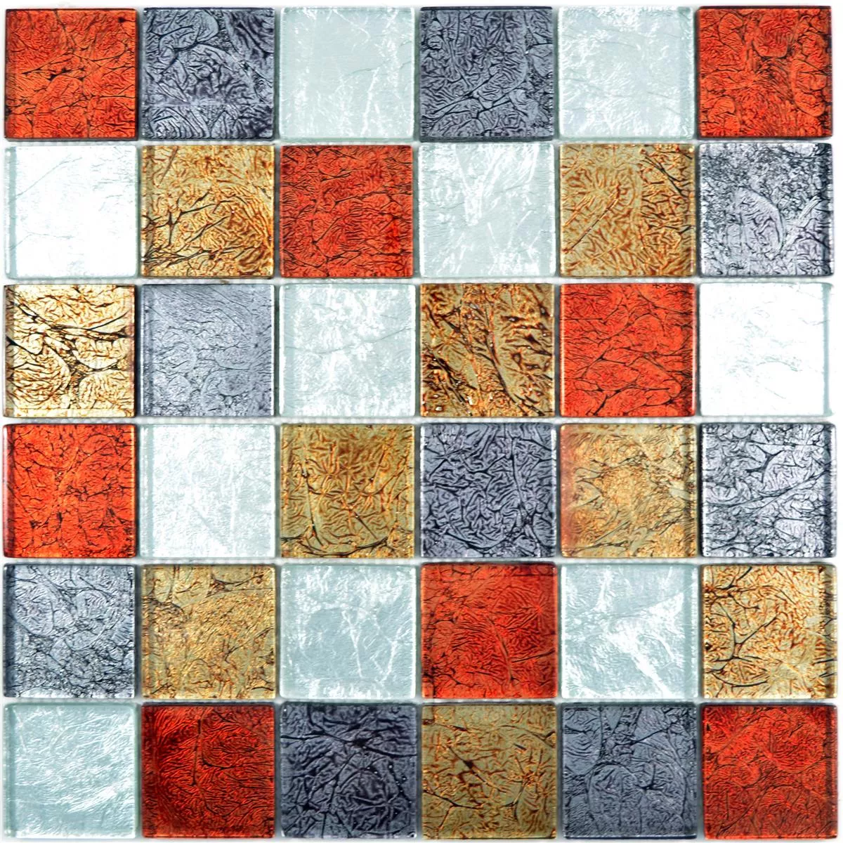 Glass Mosaic Tiles Curlew Red Brown Silver Square 48
