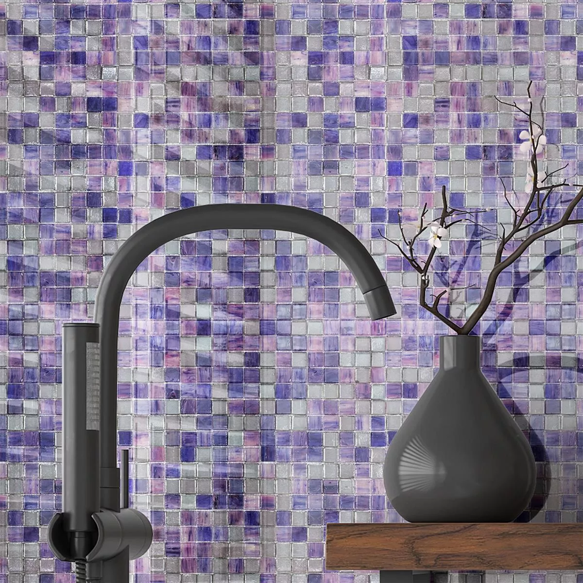 The purchase includes one mat, which corresponds to a quantity of 1. Experience the fusion of functionality and style and give your rooms a timeless elegance with the Edessa Purple Mix glass mosaic tiles.