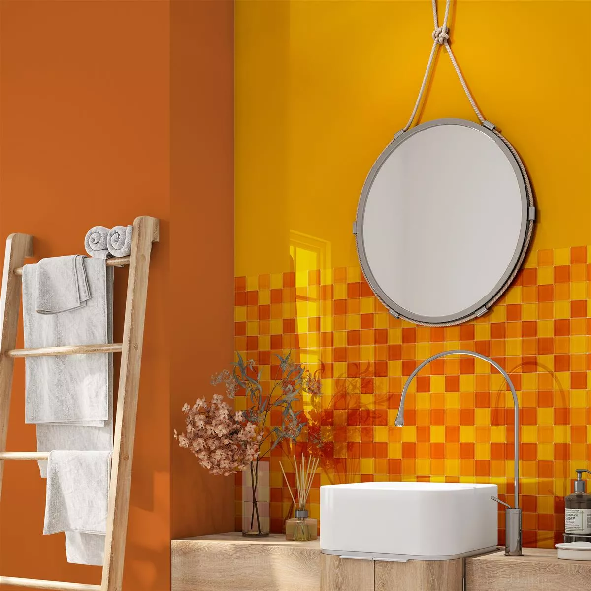 The Glasgow Mosaic Tile in Orange brings vibrant colour and a glossy finish to your rooms and is ideal for any area that needs a striking and modern touch. This tile is great for walls and floors in bathrooms, kitchens, interiors and showers.