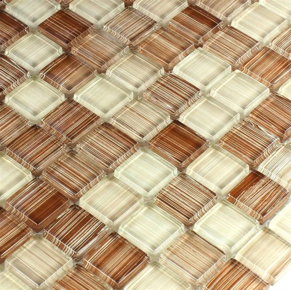 Glass Mosaic Tiles Lafayette Brown Beige Striped 8mm