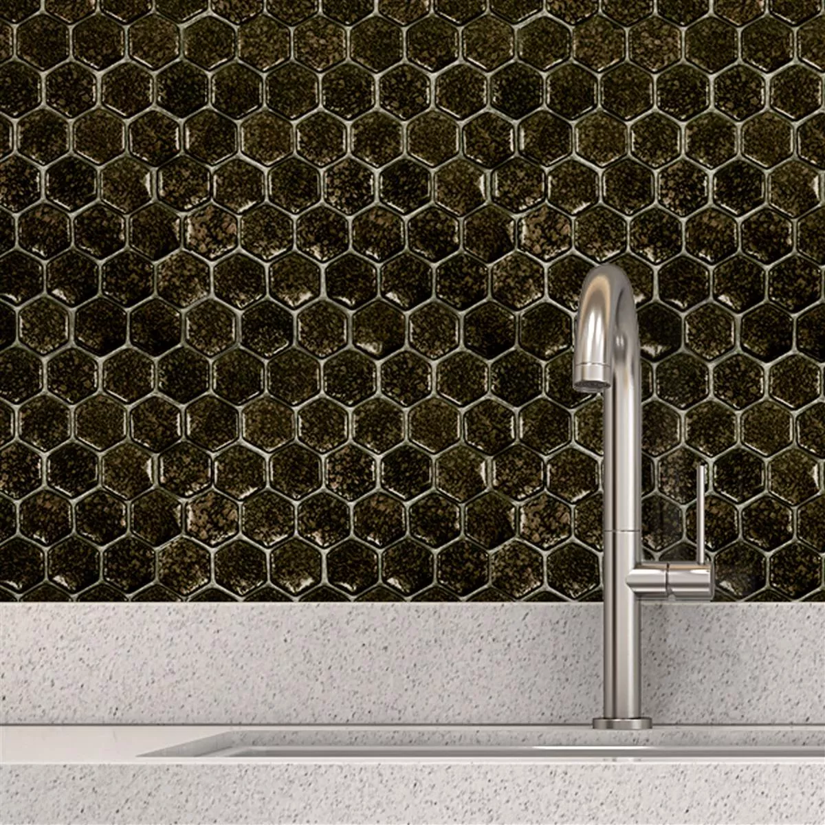 Glass Mosaic Tiles Leopard Hexagon 3D Gold