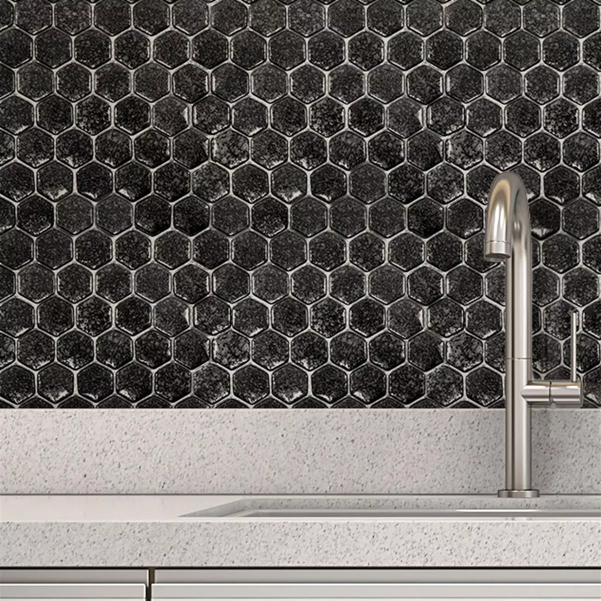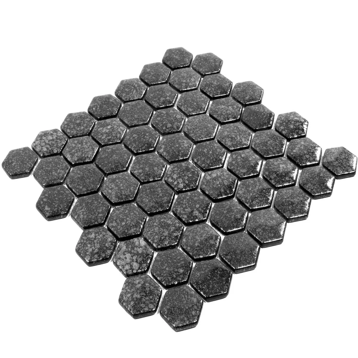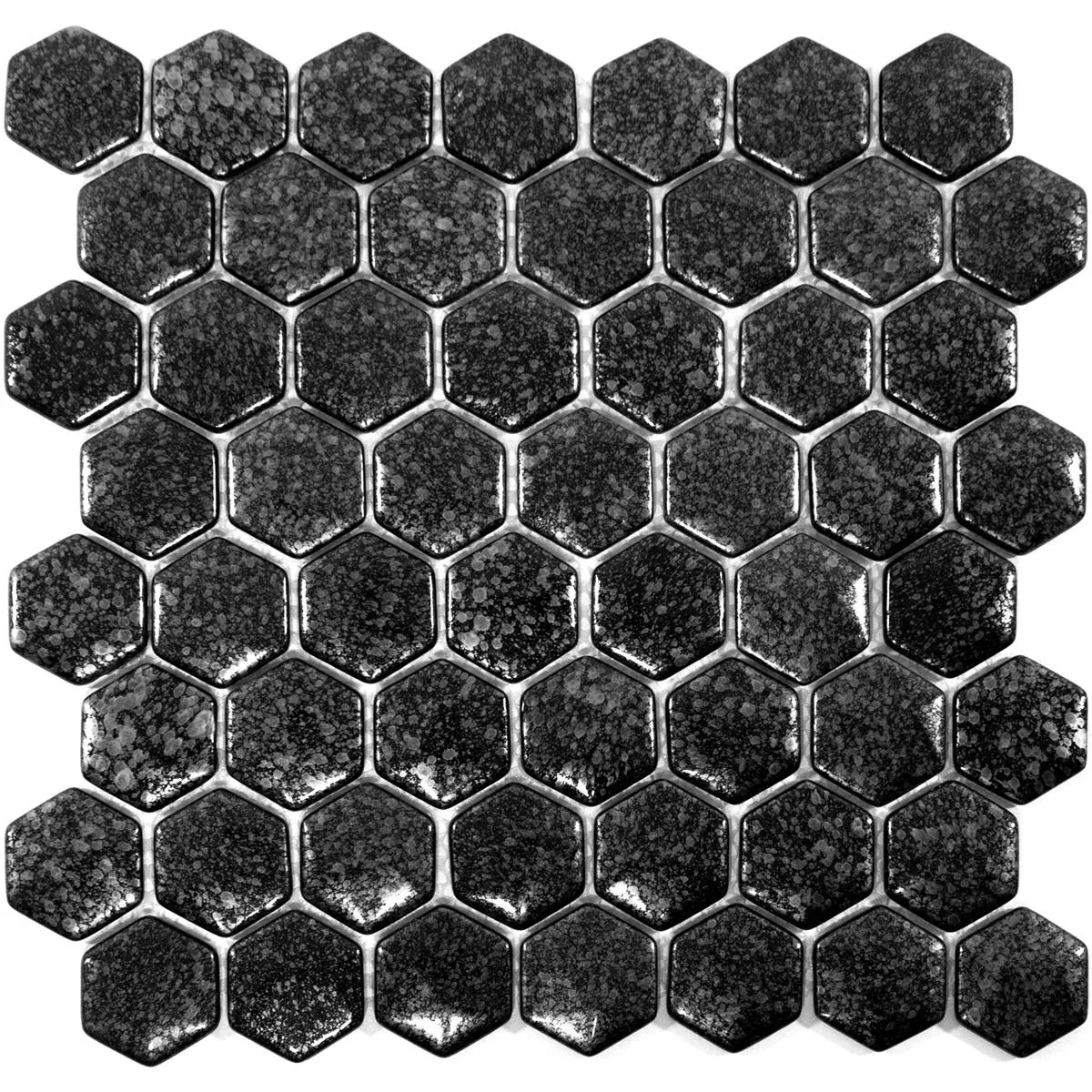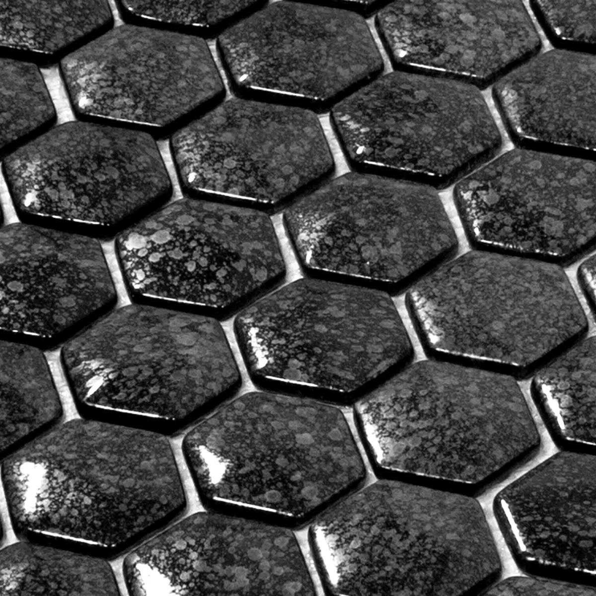 The mosaic tiles are available in a practical hexagon format of 29 x 29 cm. Each tile measures 40 x 40 mm and is 7.5 mm thick, creating a striking but harmonious look. The glossy surface catches the light and enhances the elegant grey tone, which can be integrated into a variety of interior designs.