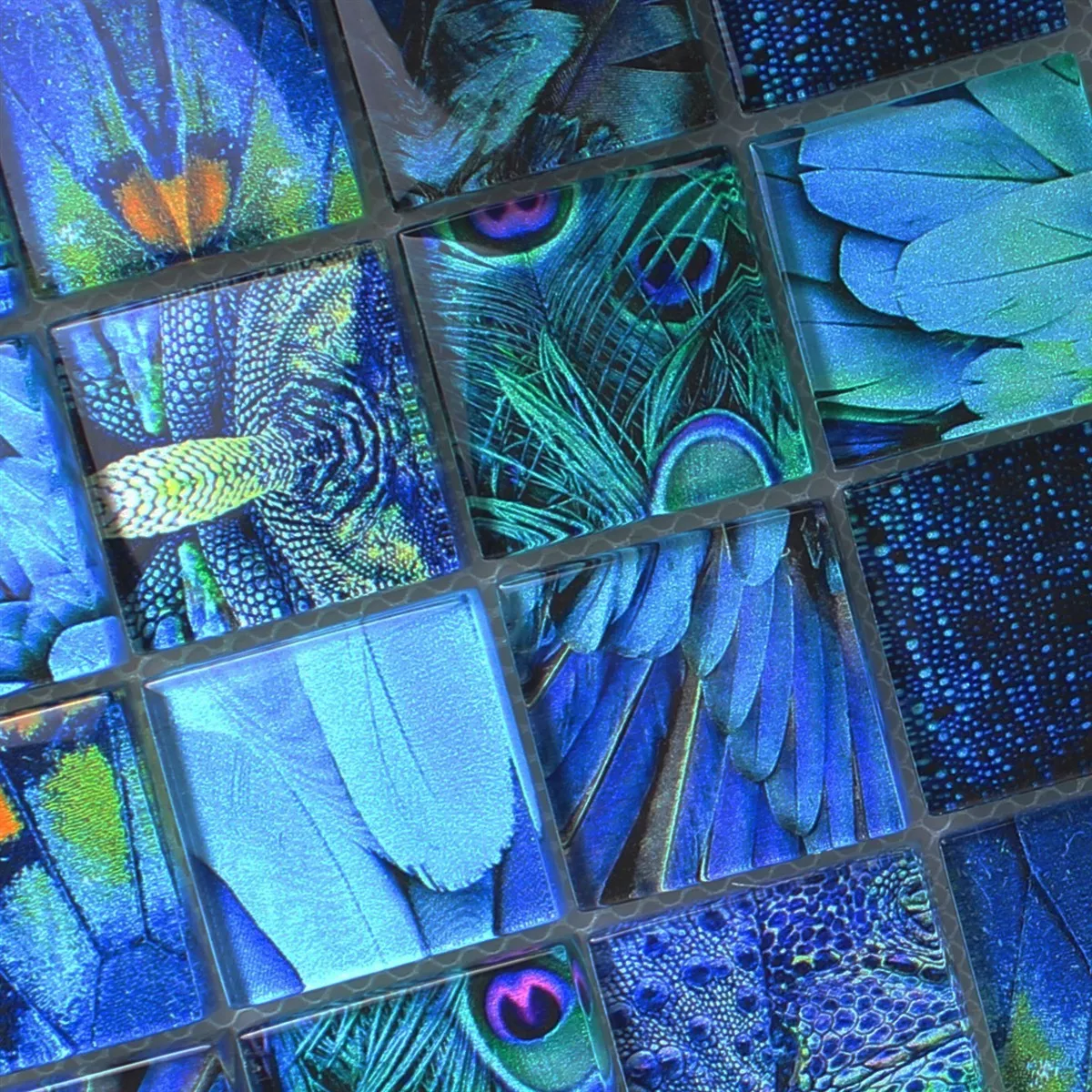 Although designed for indoor use, it can also be used in storage rooms, with its glossy surface and intricate design enhancing a functional environment. The Peafowl glass mosaic tile is undoubtedly an excellent choice for enhancing the design and style of your home.