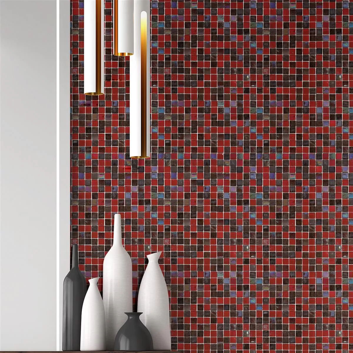 The Salsa glass mosaic tiles in the intense colors red and black are a stylish addition to your rooms.