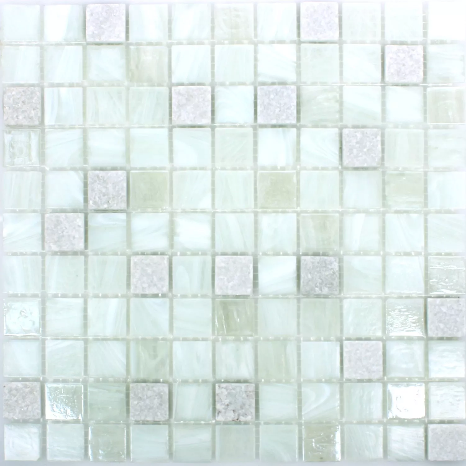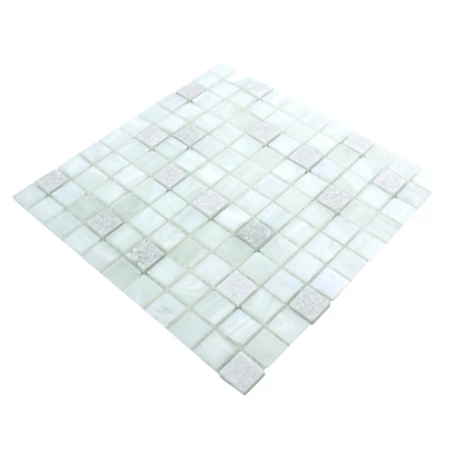 Glass Natural Stone Mosaic Daily Rush White Cream