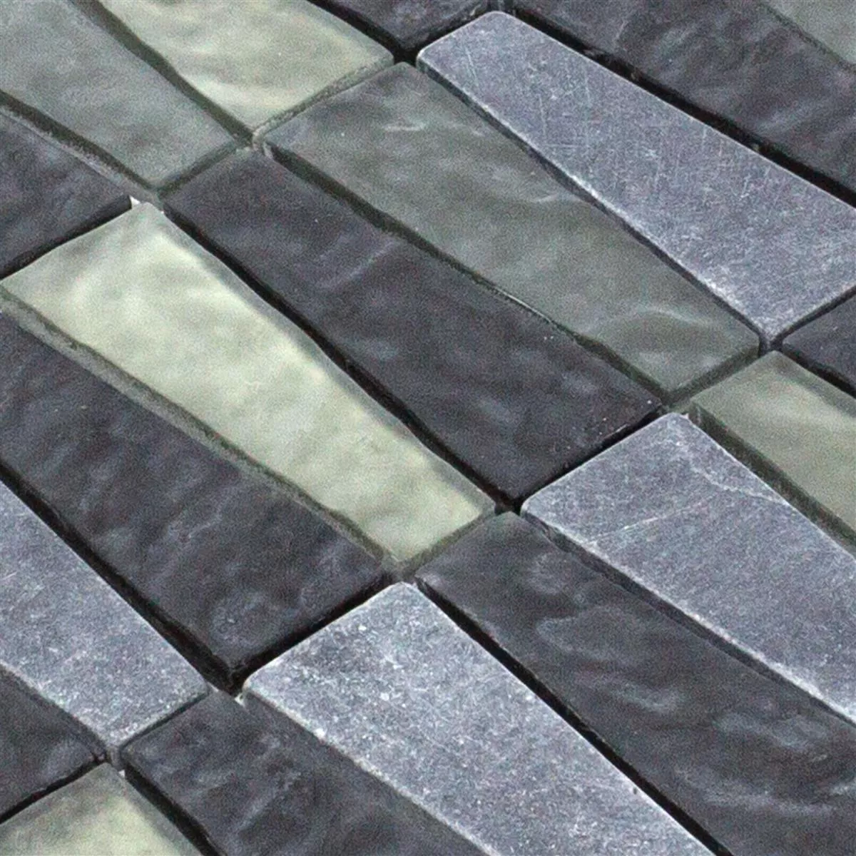 Glass Natural Stone Mosaic Tiles Marseille Grey Black Mix