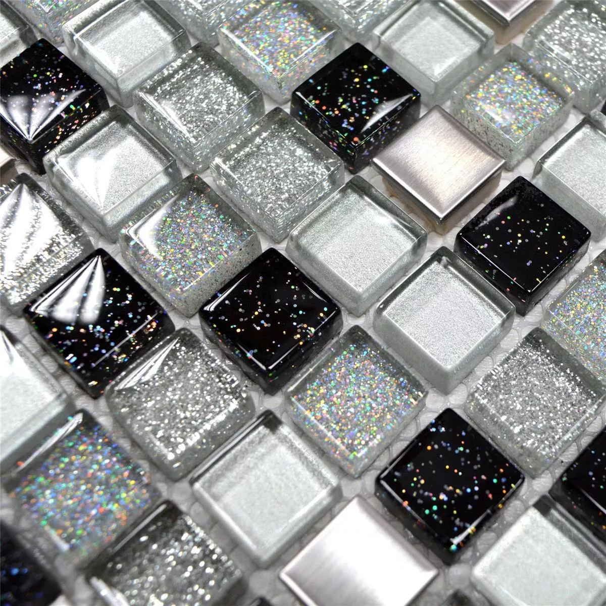 Glass Stainless Steel Metal Mosaic Tiles Silver Black