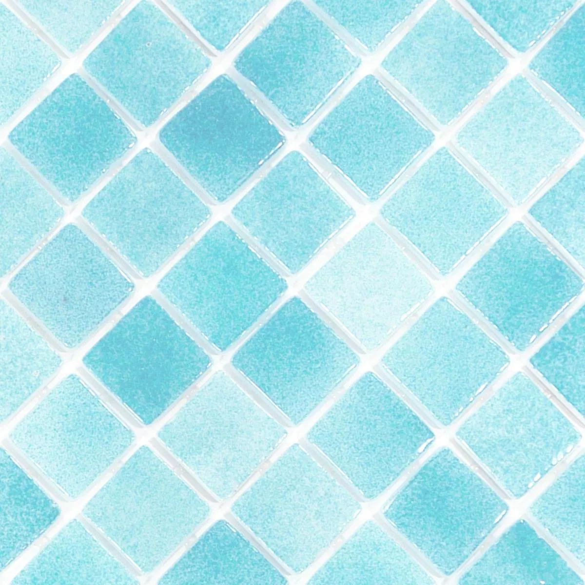 Our glass swimming pool mosaics Lagoona in light blue transform your pool area, shower or kitchen into an oasis of elegance.