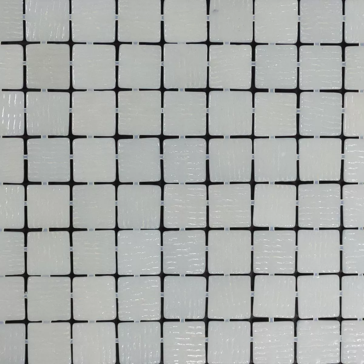 The material, glass, gives this mosaic a remarkable lightness and brilliance. The shiny surface reflects the light and gives a touch of luxury to your swimming pool or surroundings.