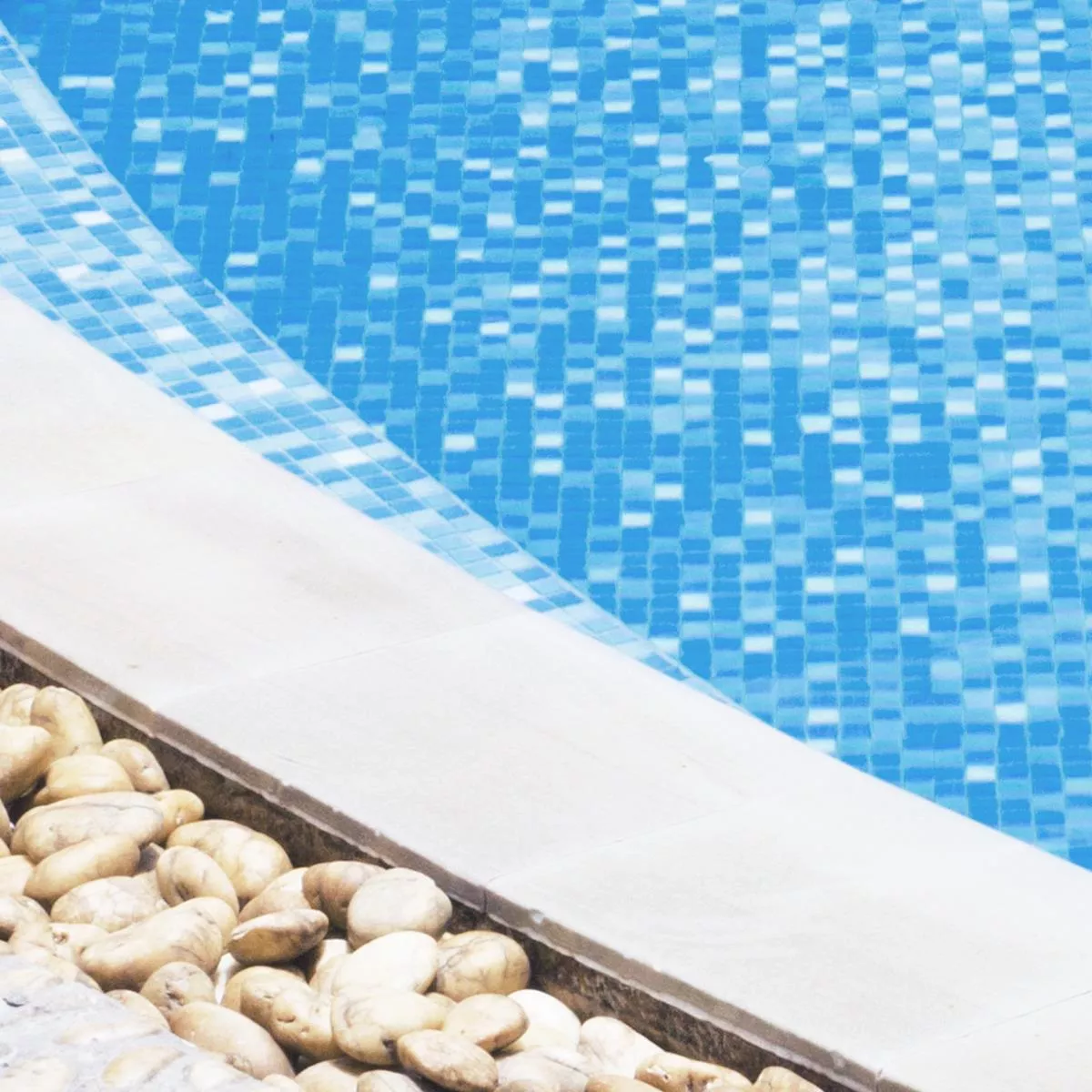 These versatile mosaic tiles are not only suitable for pool areas, but also for use indoors, especially in permanently wet areas such as bathrooms and showers. Their bright sea blue brings freshness and vitality to any room and gives your home a touch of tropical flair.