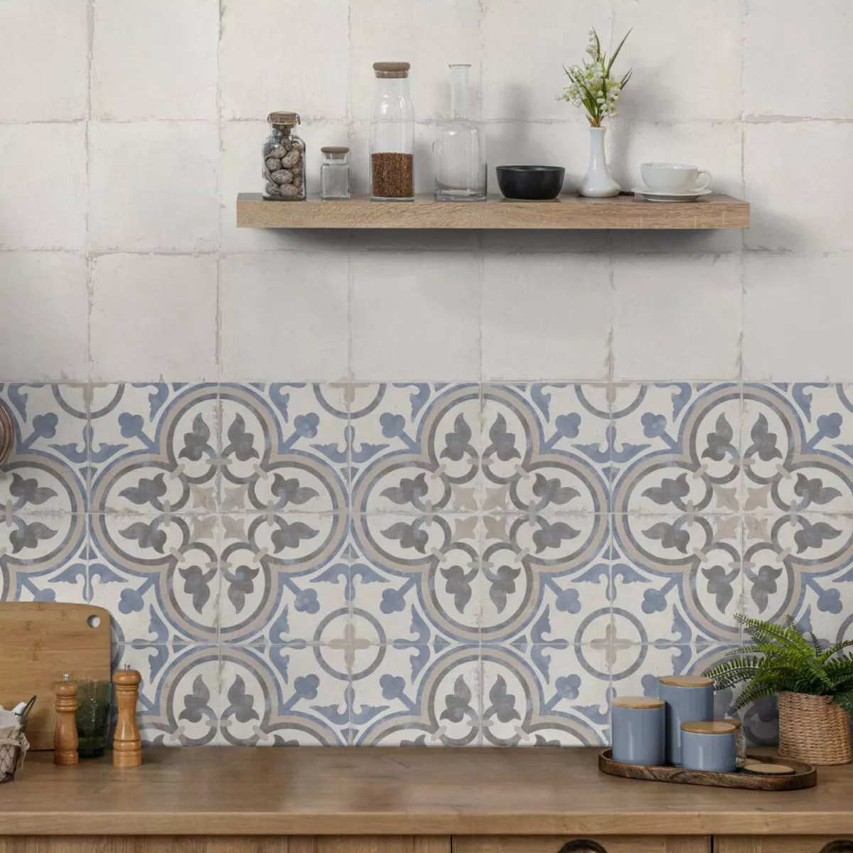 This porcelain tile is distinguished by its attractive color palette, which includes blue, brown, and cream, and blends beautifully with a variety of decorating styles. The surface has a matte, textured finish, giving the tile a pleasant feel and an appealing appearance. Thanks to its special properties, this tile is slip-resistant, waterproof, and frost-resistant.