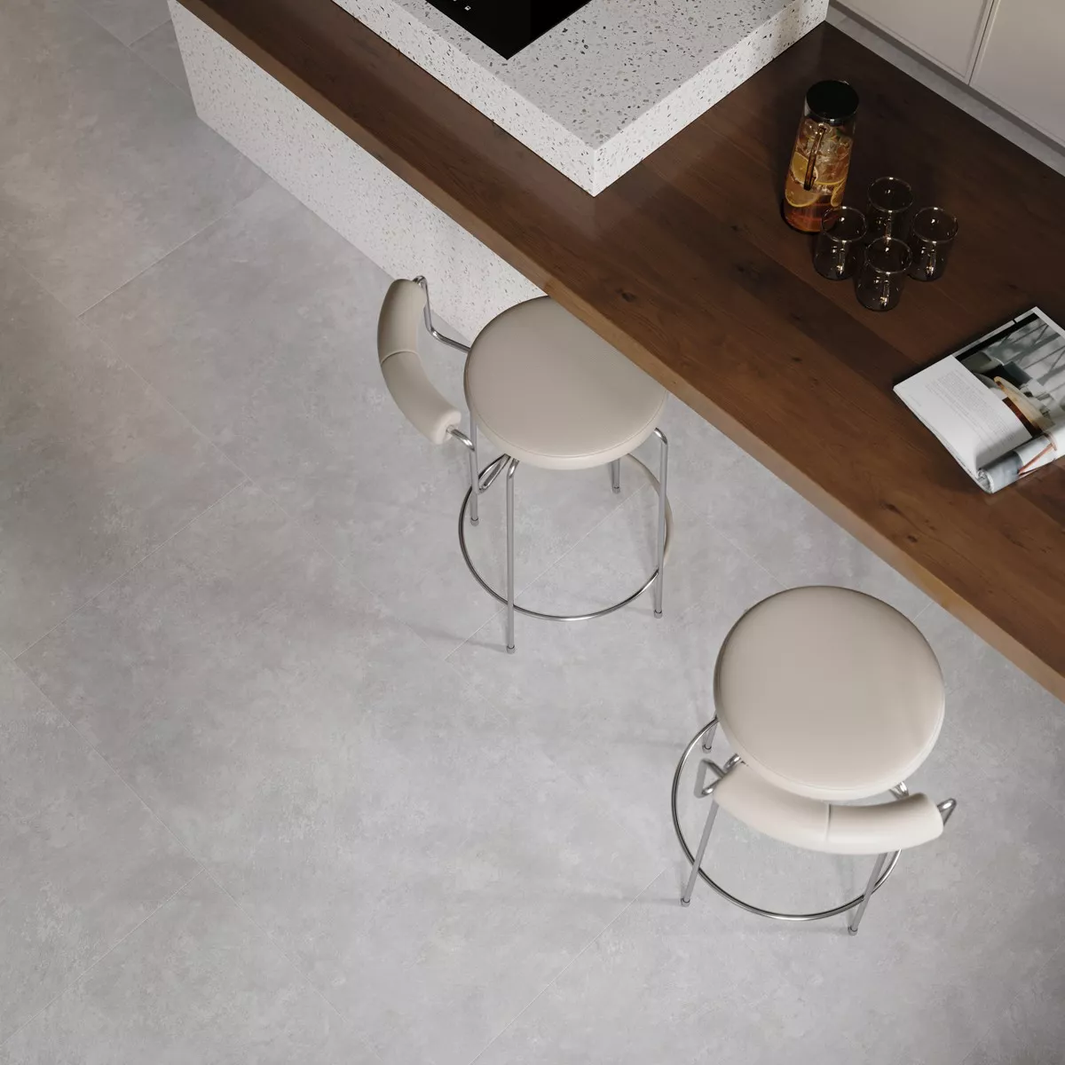 The Jamaica porcelain stoneware floor tile is the perfect element for your interior. Measuring 60 cm x 60 cm, it is ideally suited for kitchens, bathrooms, utility rooms, storage rooms, and living rooms. Its gray color and matte surface bring a metallic look to any room. Thanks to its special properties, the tile is suitable for underfloor heating, as well as being slip-resistant and waterproof. This makes the Jamaica tile also ideal for use as a shower wall, shower floor, and garage wall.