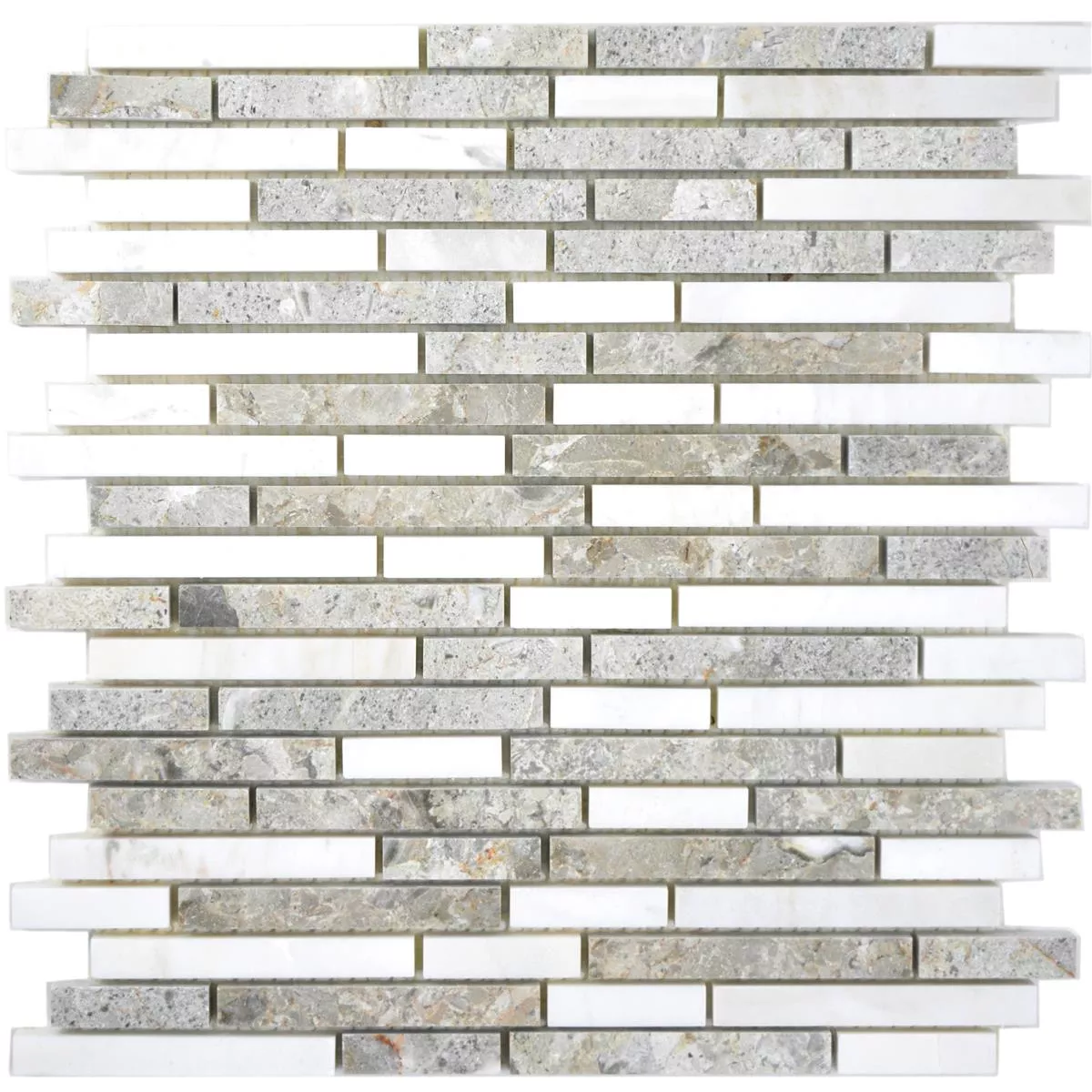 Marble Mosaic Tiles Valdese Glossy Grey White