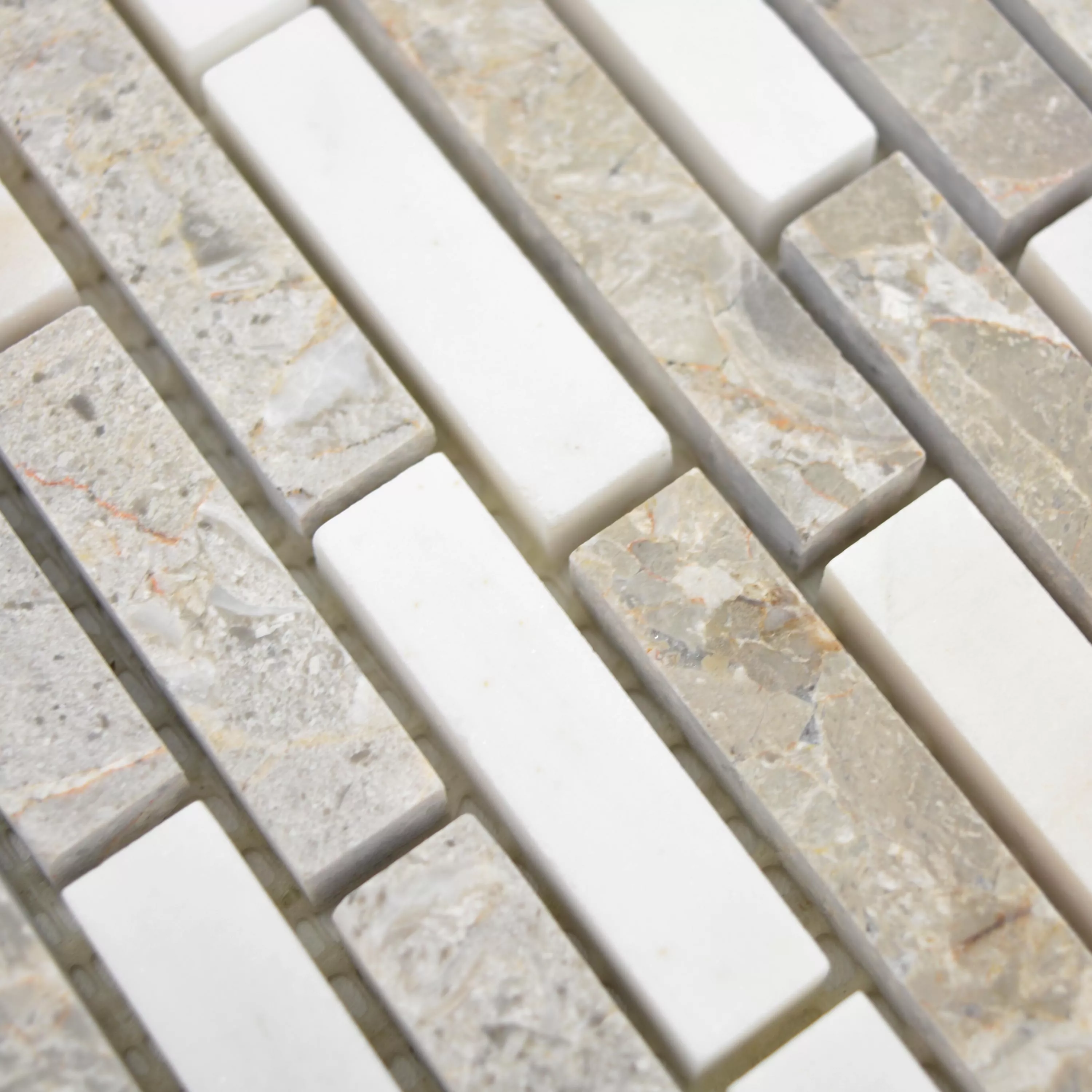 The marble tiles have a thickness of 9 mm. They are particularly suitable for bathrooms, kitchens and conservatories. Since the mosaic tiles are very heat and cold resistant, they can be used indoors and outdoors. The tile mats are easy to lay and offer long-lasting beauty on the walls. The glossy surface ensures that it is easy to clean. No dirt sticks. It can usually all be wiped down with ease. The marble mosaic tiles Valdese can be easily combined with other marble tiles. Combinations with gold-colored products are often chosen, as these underline the upscale style of living.