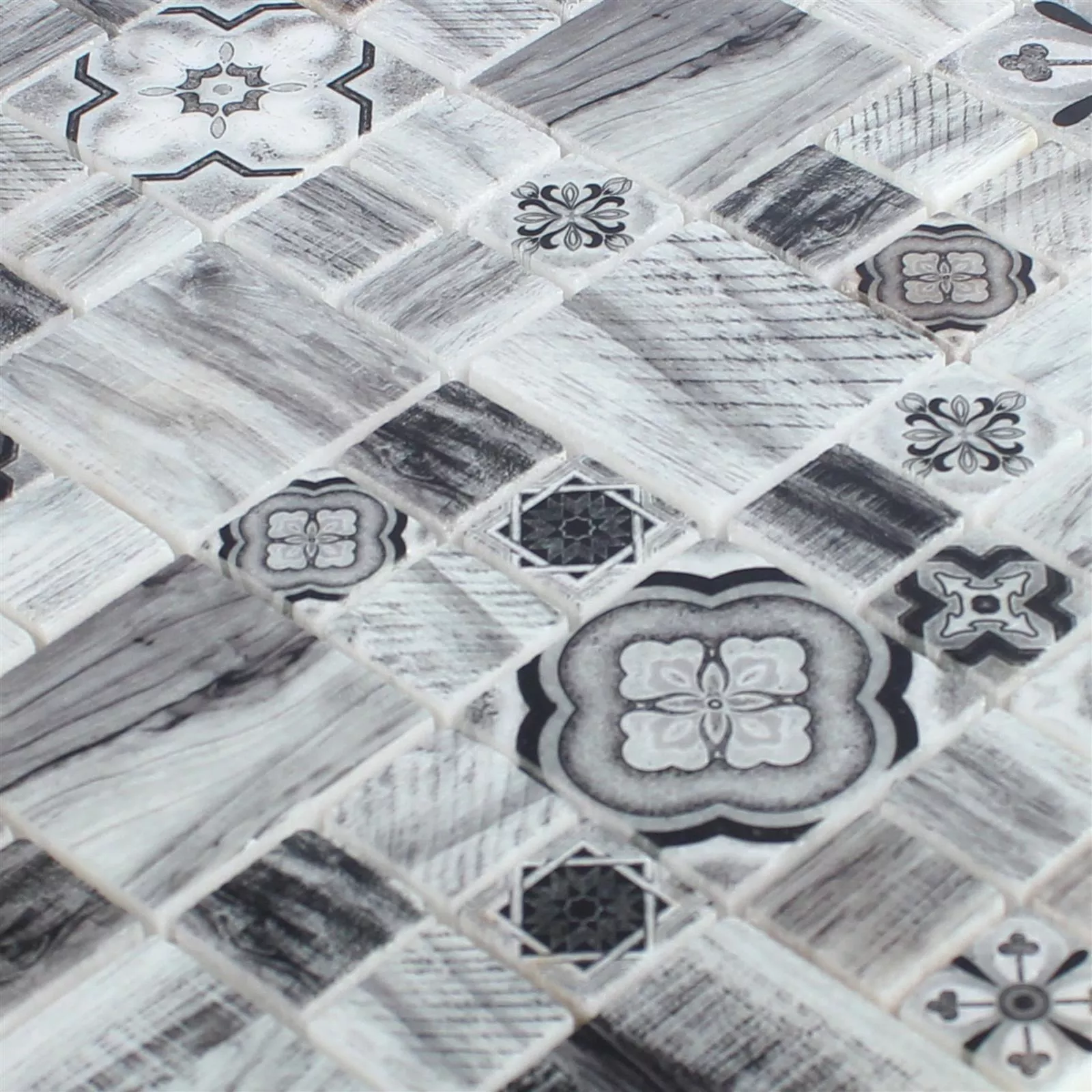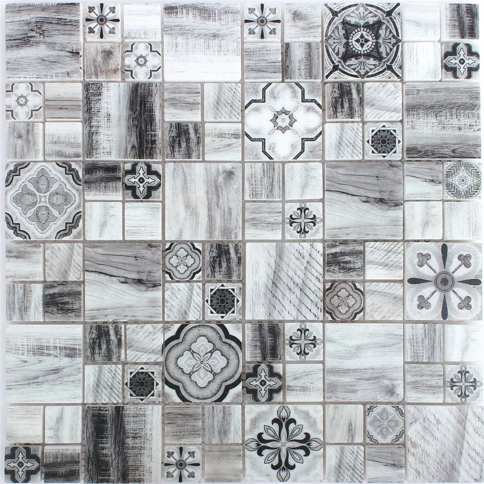 When it comes to the color of the Portland mosaic, you can choose between a timelessly simple variant in shades of gray and one in light brown. The matt surface of the tiles underlines the wood look of the pattern and creates a warm atmosphere. In the brown color scheme, blue accents on individual tiles add a visual highlight.